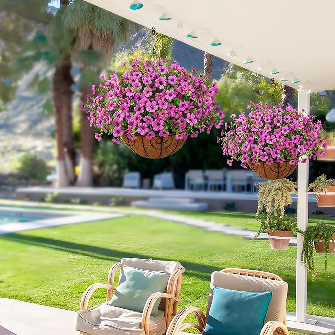 - UV-Resistant: Don't worry about fading – these artificial hanging outdoor flowers are UV-resistant to keep their vibrancy in the sun.