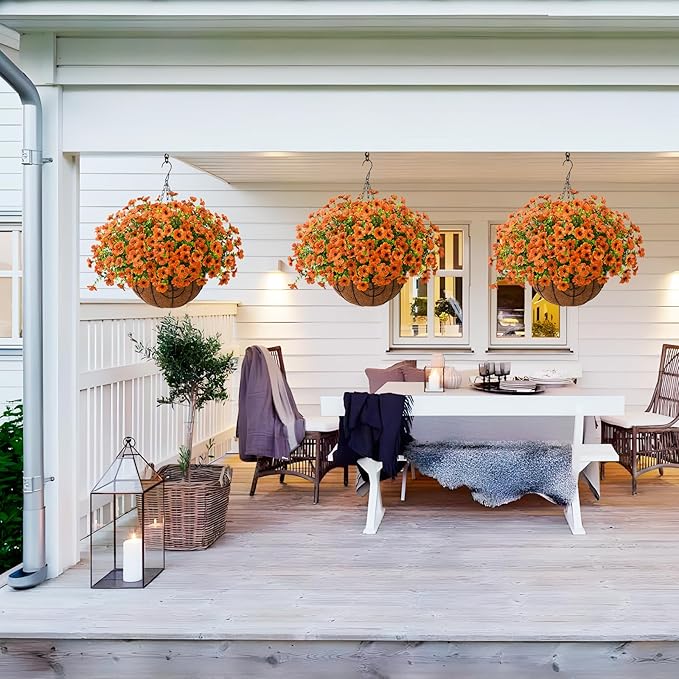 - Decoration Anywhere:Coating for good rust protection. Crafted coconut palm hanging baskets and high-quality artificial silk daisies flowers can beautify your corridors, balconies, study rooms, restaurants, AND NO MAINTENANCE, WILL NOT WITHER, BLOOM IN ALL SEASONS.