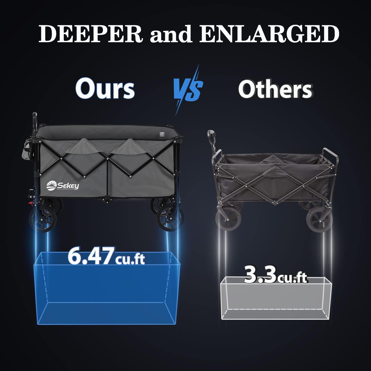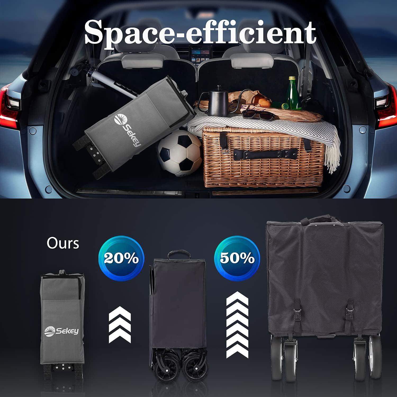 Sekey 220L Collapsible Foldable Wagon with 330lbs Weight Capacity, Heavy Duty Folding Wagon Cart with Big All-Terrain Wheels & Drink Holders (Grey)