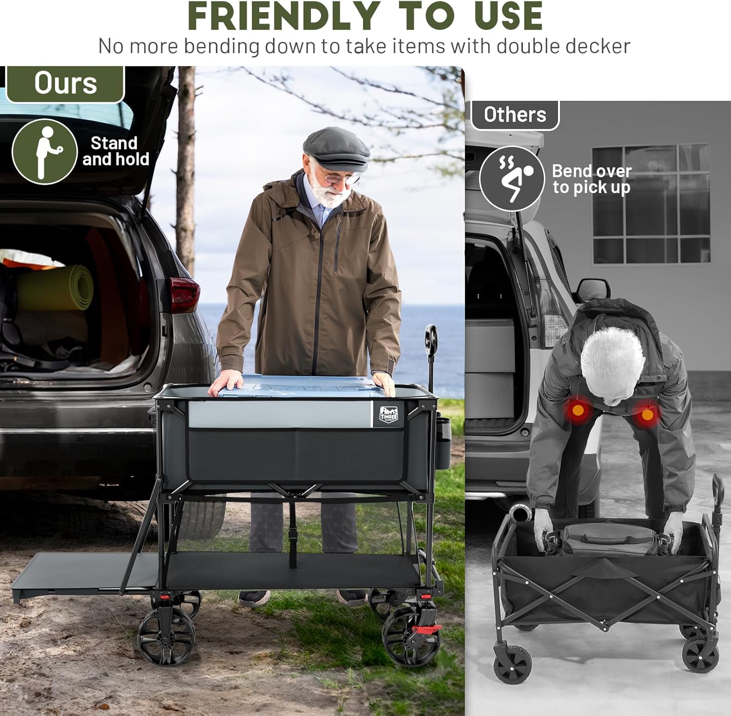 TIMBER RIDGE 400L Large Capacity Folding Double Decker Wagon with Brakes, 54" Extra Long Extender Wagon Cart, 660lbs Heavy Duty Collapsible Cart, All-Terrain Big Wheels for Camping, Sports, Shopping