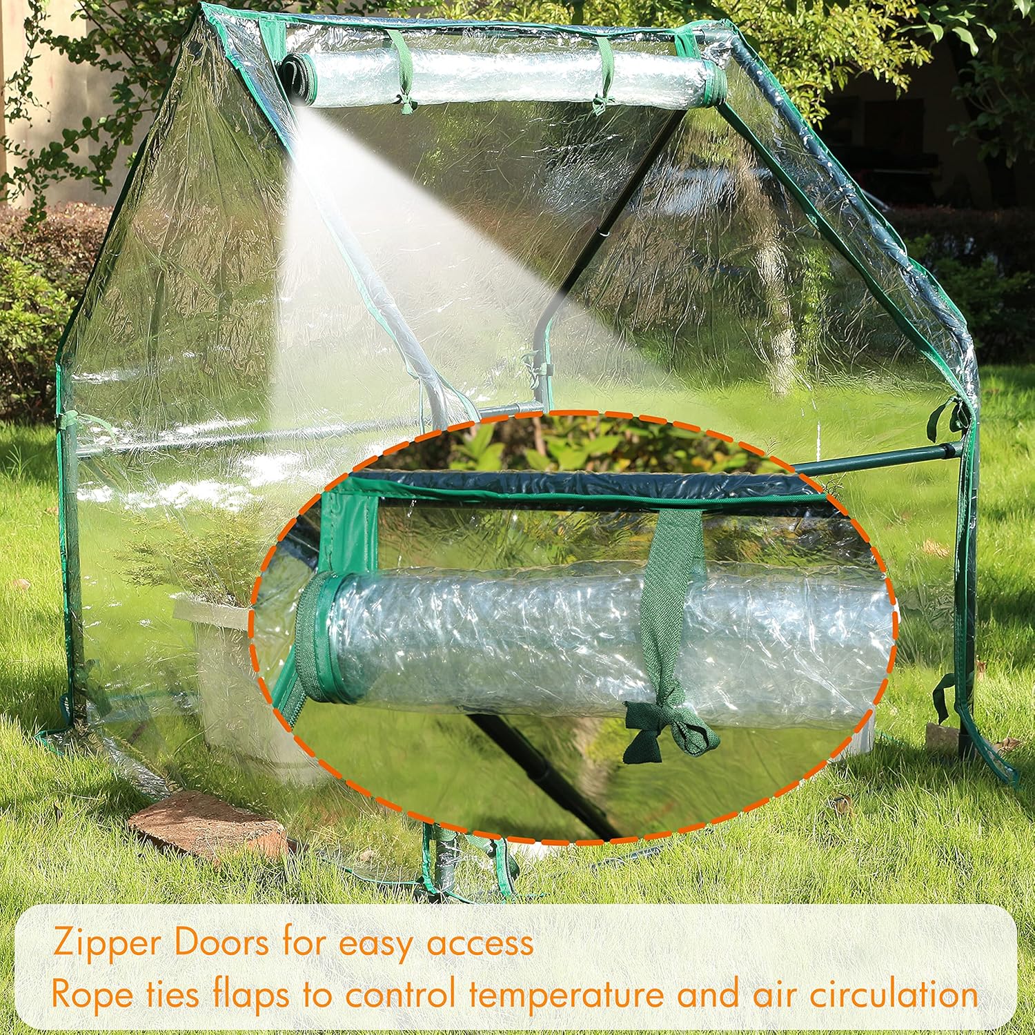 - Zipper Entrance - The greenhouse for outdoors equipped with zipper entrance and straps to hold the rollable door is easy to open and close. The zippered windows allow easy access for tending to your plants, and controlling temperature and humidity.