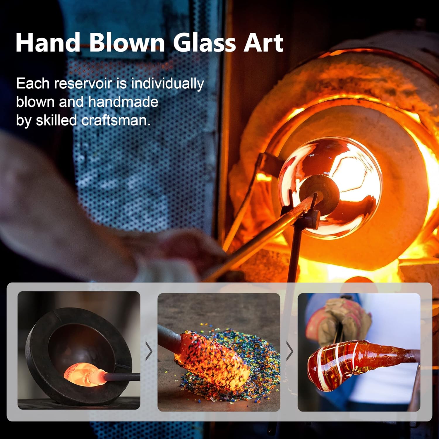- HAND BLOWN GLASS ART: Each bottle is handcrafted from recycled glass by experienced glassblowers. The curves and texture are convinced by artists. Each feeder is truly one of a kind