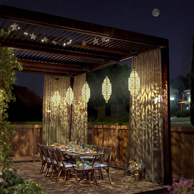 Twinkya Hanging Solar Lights Outdoor Garden Decorative Solar Lantern Waterproof Metal Moroccan Outdoor Decorations for Patio Pathway Yard Porch Backyard Garden Decor (White, 1 Pack)