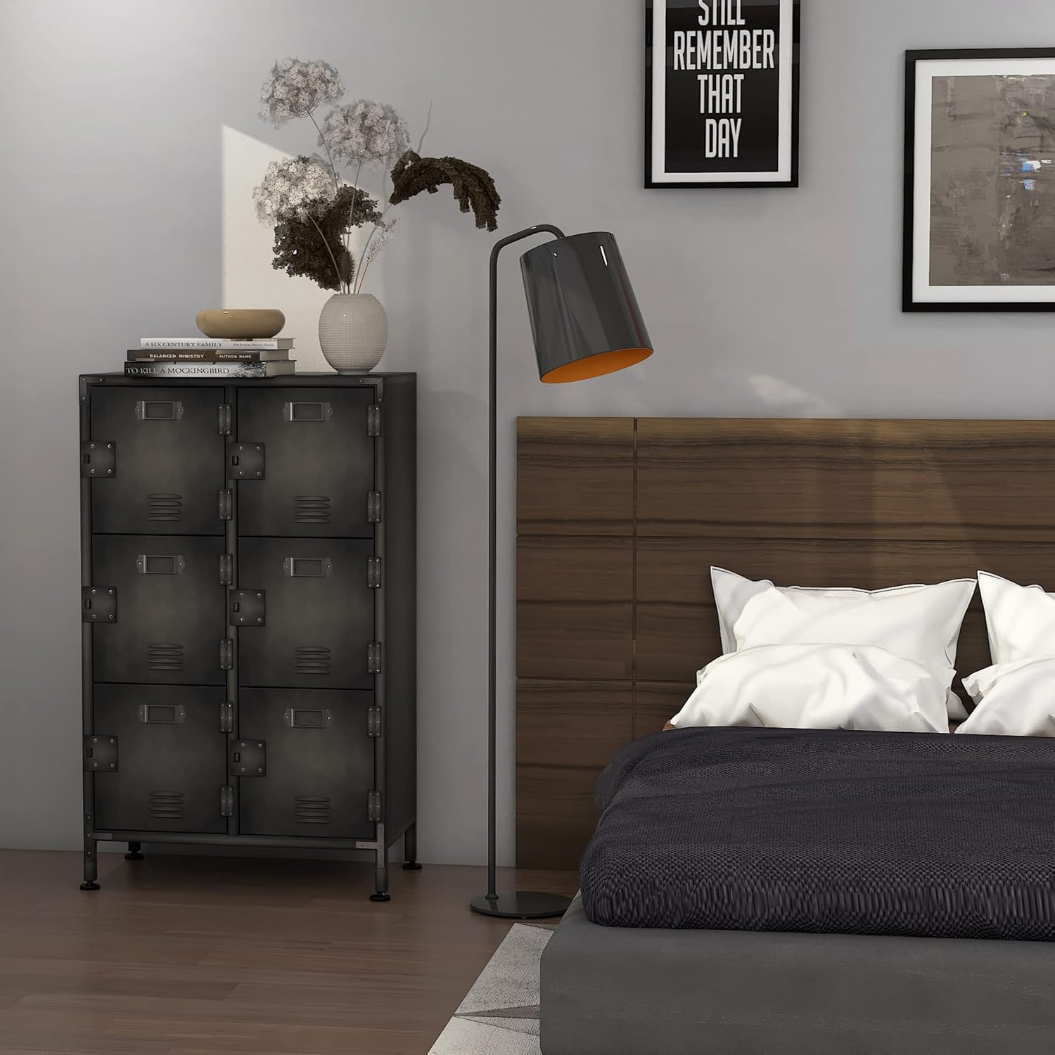 Metal Locker Storage Cabinet, 47.3" Employees Locker with 6 Doors, Steel Retro Wardrobe with Adjustable Feet for Home, Office, Gym, School
