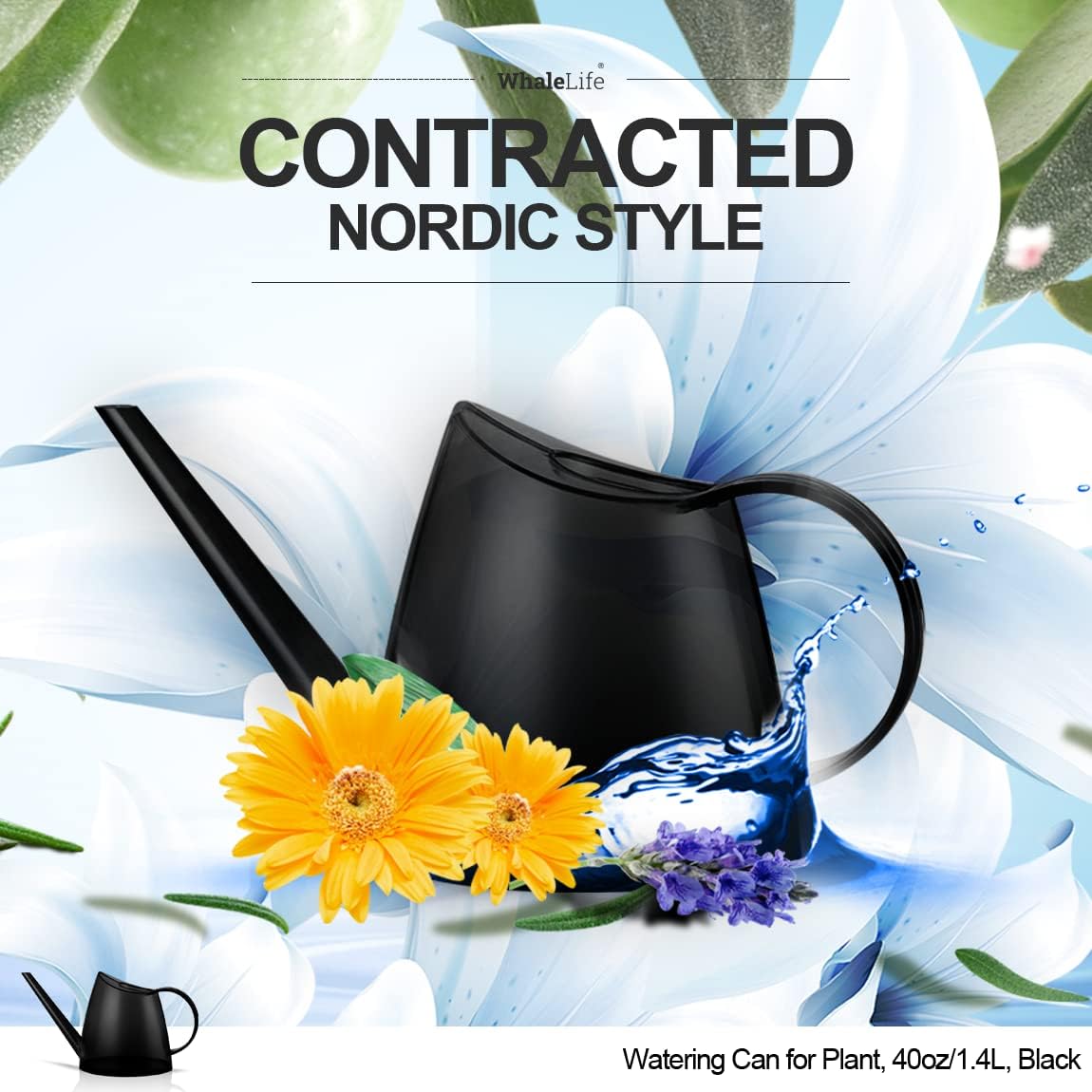 WhaleLife Indoor Watering Can for House Bonsai Plants (1.4L, Black)