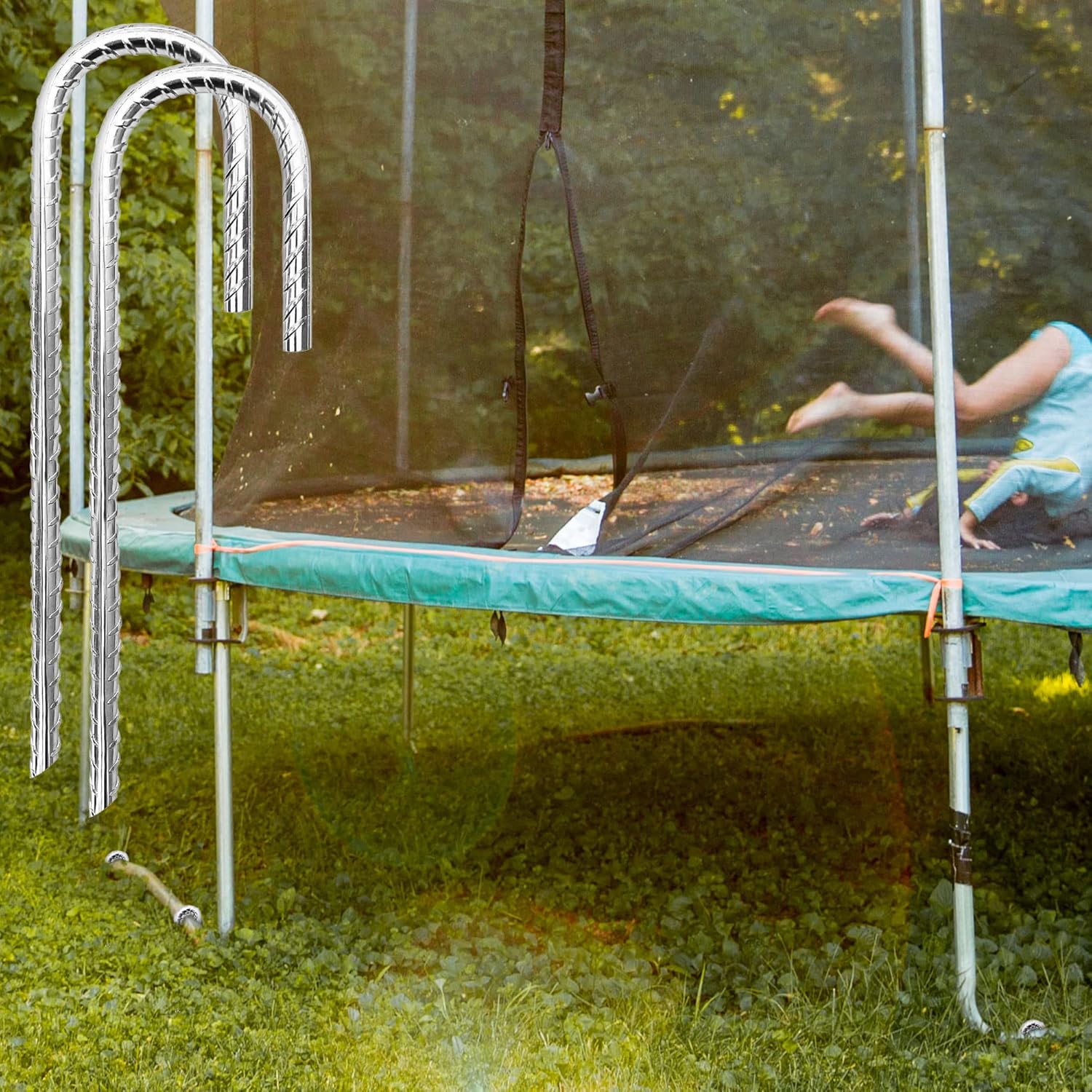 - 【Wide Application】: Hammer these J-hook reinforced ground stakes to fix garden fences, trampolines, camping tents, canopies, barbed wire, gardens, swings, with a firmer grip, not easy to loosen, and prevent the tent or shed from sliding in the wind.
