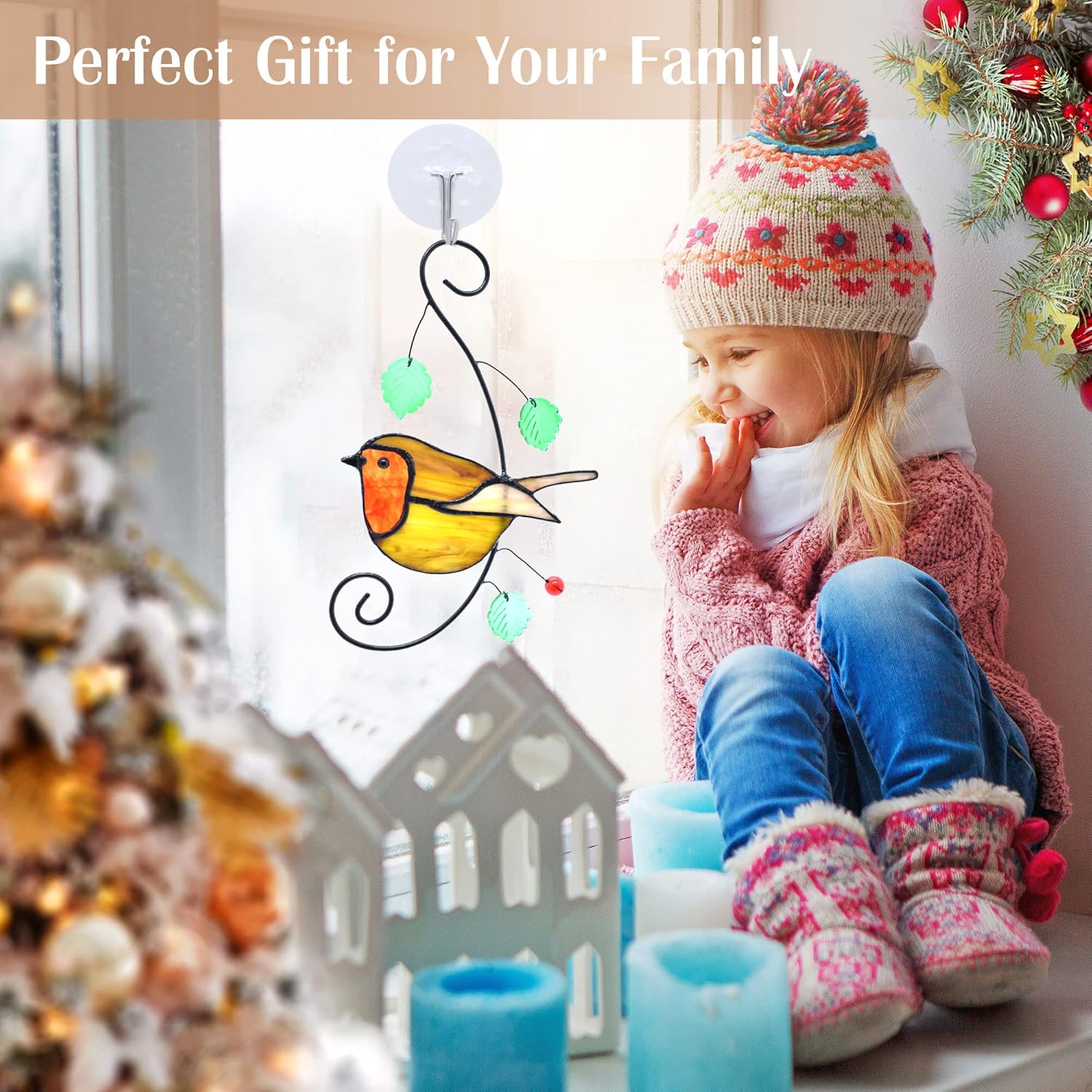 Lolitarcrafts Robin Stained Glass Suncatchers Bird Stained Glass Window Hangings Unique Gift for Your Family
