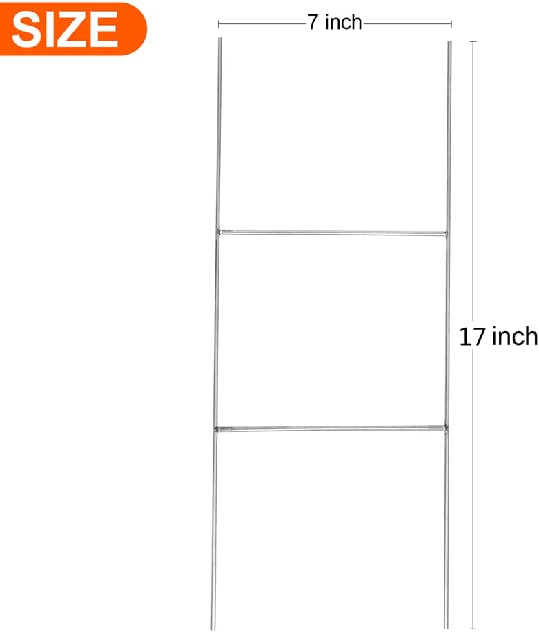 25 Pack Heavy Duty Metal H-Stakes H Frame Wire Stakes, 17'' x 7'' Yard Sign Stake for 4mm Corrugated Signs