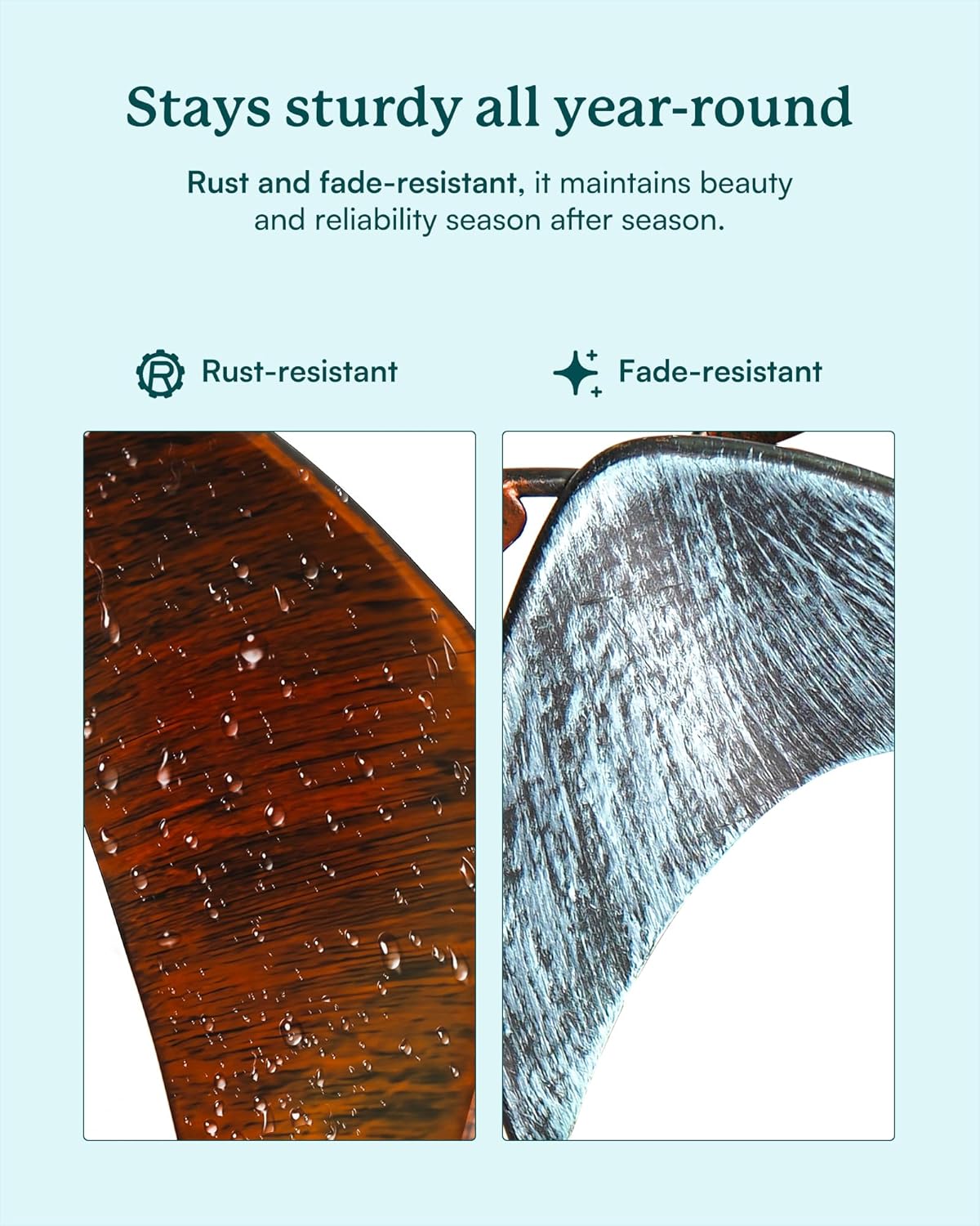 - 【Durable All-Season Spinner Decor】Crafted from sturdy iron with a protective anti-rust and fade-resistant coating. This metal wind spinner withstands all weather conditions, like rain, snow, or strong winds.