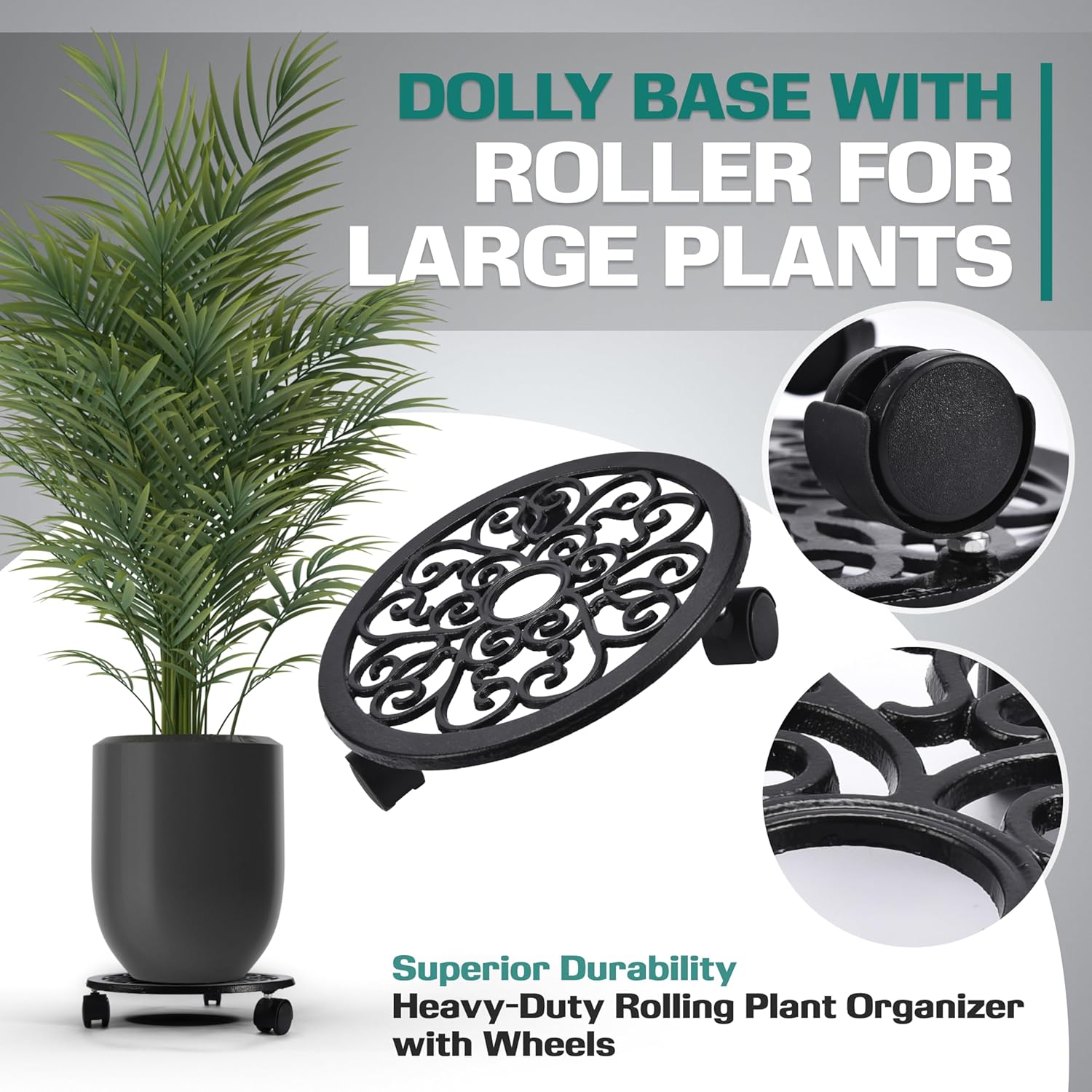 2WAYZ Plant Stand with Wheels - Heavy-Duty Rolling Plant Caddy - Dolly Base with Roller for Large Potted Plants and Flower Pot - Ideal for Indoor and Outdoor Planters - Set of 1 - Black