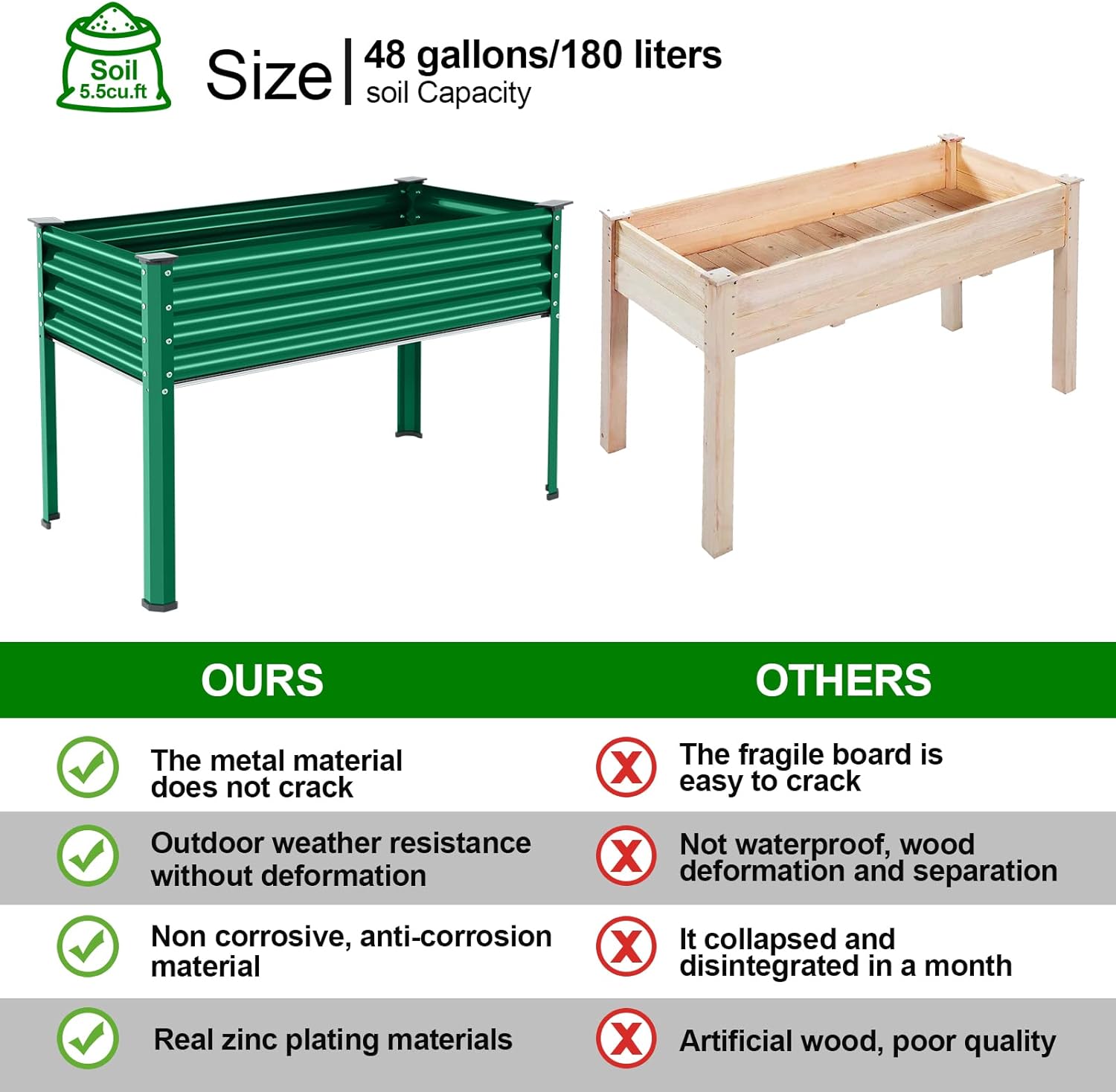 Land Guard Galvanized Large Metal Raised Garden Bed with Legs for Vegetables (Green)