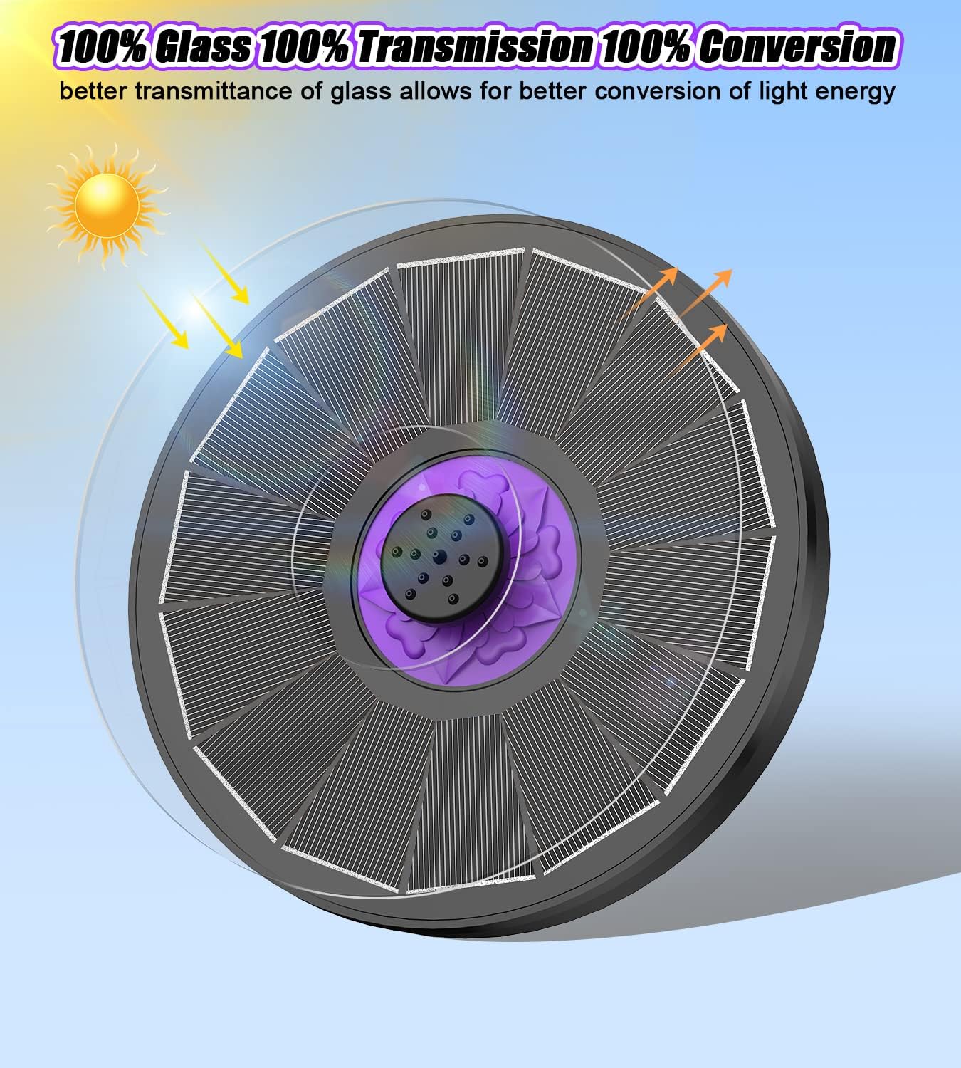 - High-end Glass Manufacturing Process: The solar water fountain uses new anti-corrosion glass materials to ensure that if it's for a long time in harsh environments, it will not oxidize and turn white. The glass surface gives the fountain a very high-end look and a good texture, and the purple pattern in the center looks like a flower bud. It will undoubtedly be the most beautiful fountain pump you have ever seen, adding a view and fun to your garden