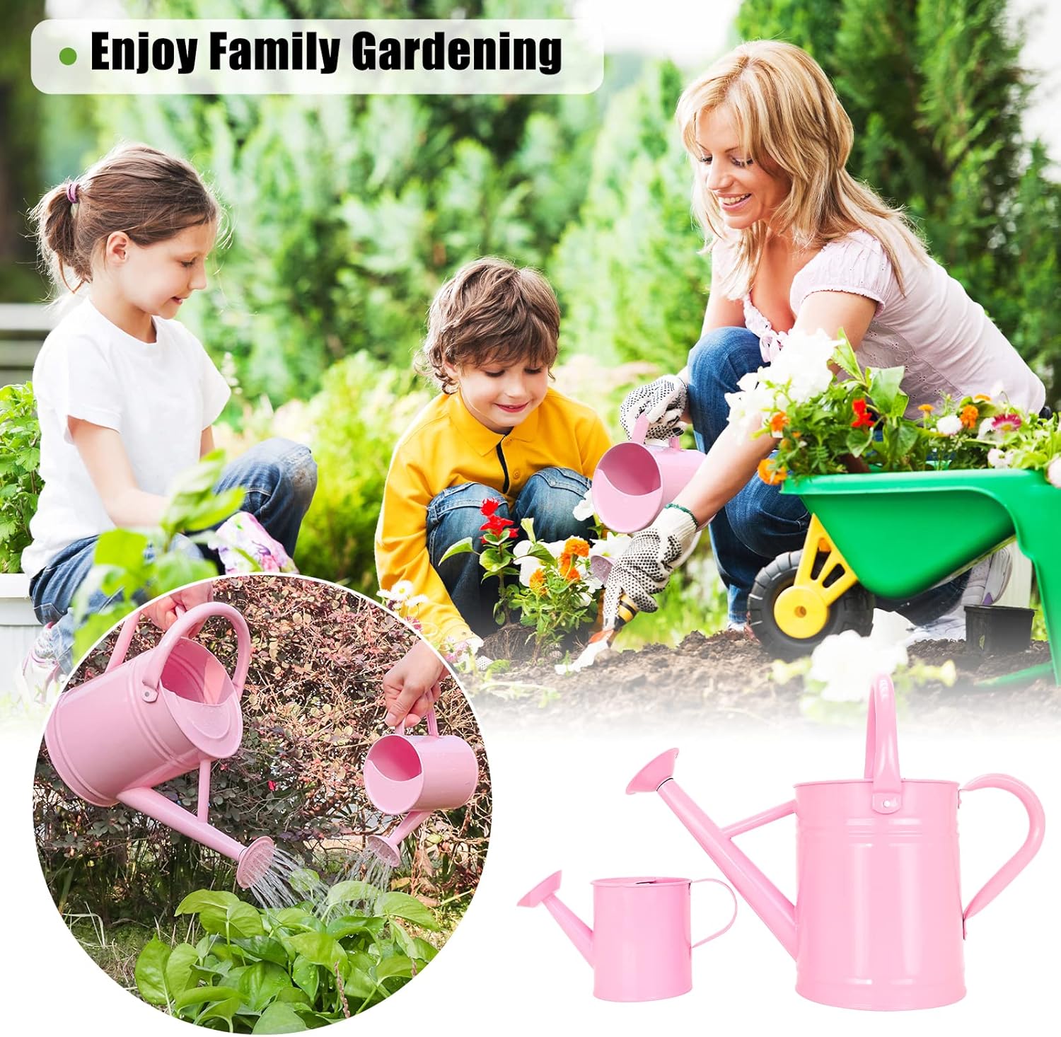 Metal Watering Can (1 Gallon) for Outdoor&Indoor Plants with Free Small Watering can for Kids, Plant Watering Can with Removable spout, Perfect for Garden Flower, Houseplants, Pink