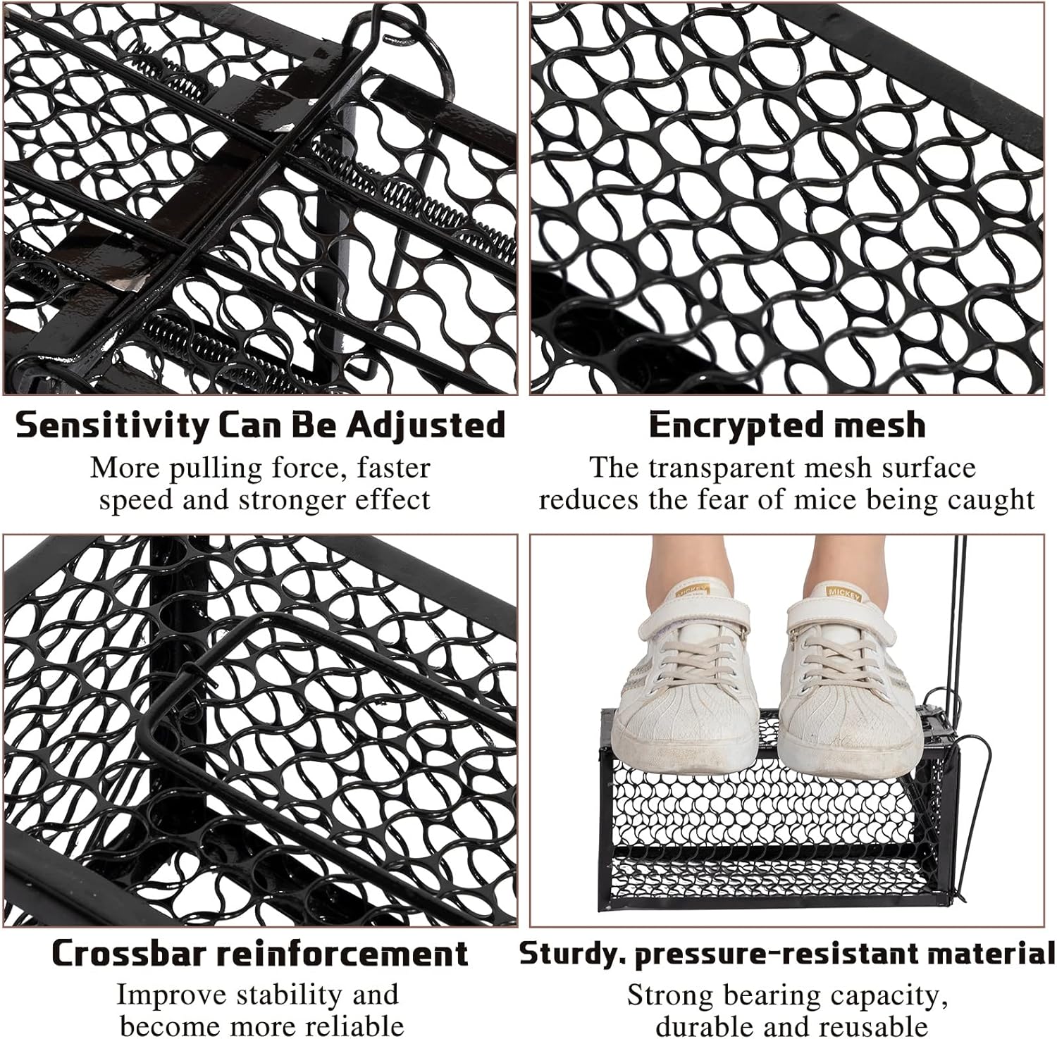 - Simple to Use: the mouse cage is easy to use, you simply lift the door and place the bait on the pedal, once the mouse enters the cage, touch the trigger and the door will immediately lock automatically and leave the critter inside