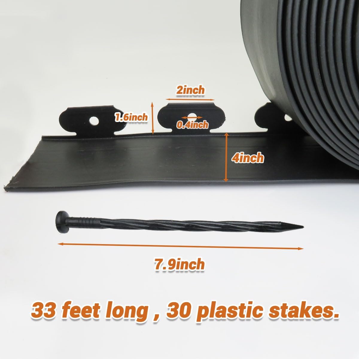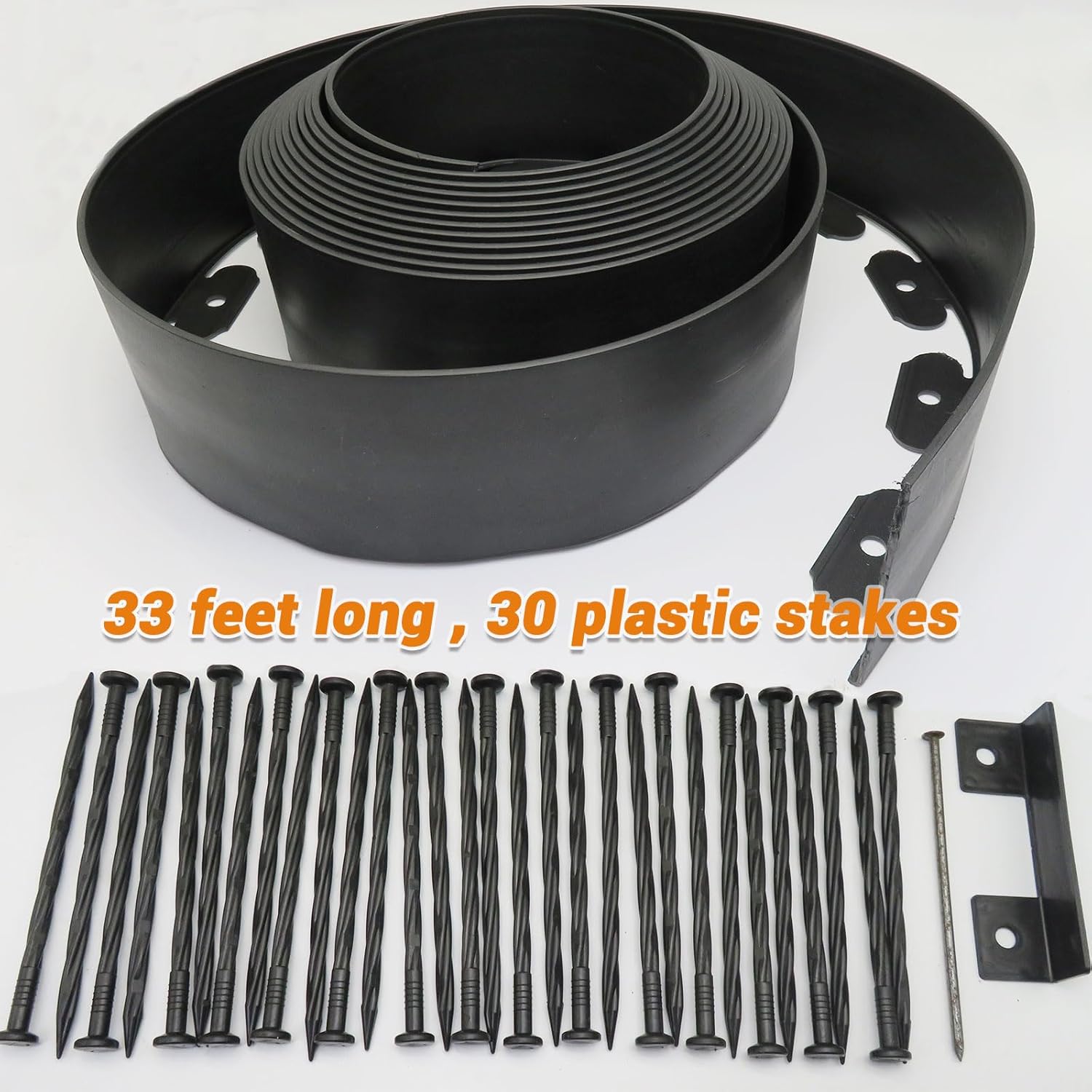 - 【Item Dimensions】33 feet length, 4 inch height landscape edging and 30pcs 8-inch spiral spikes. The garden edging ,suitable for lawns edging,flower beds and pathways.