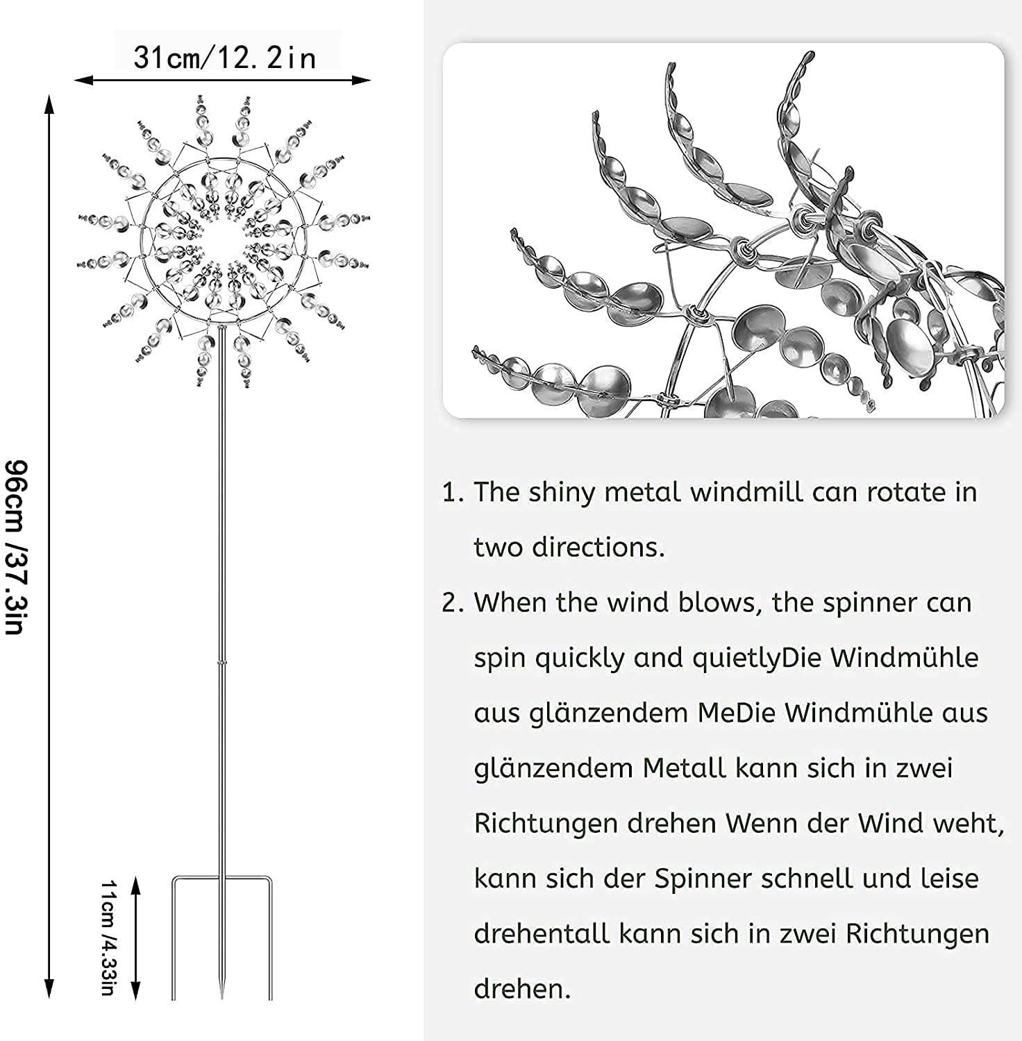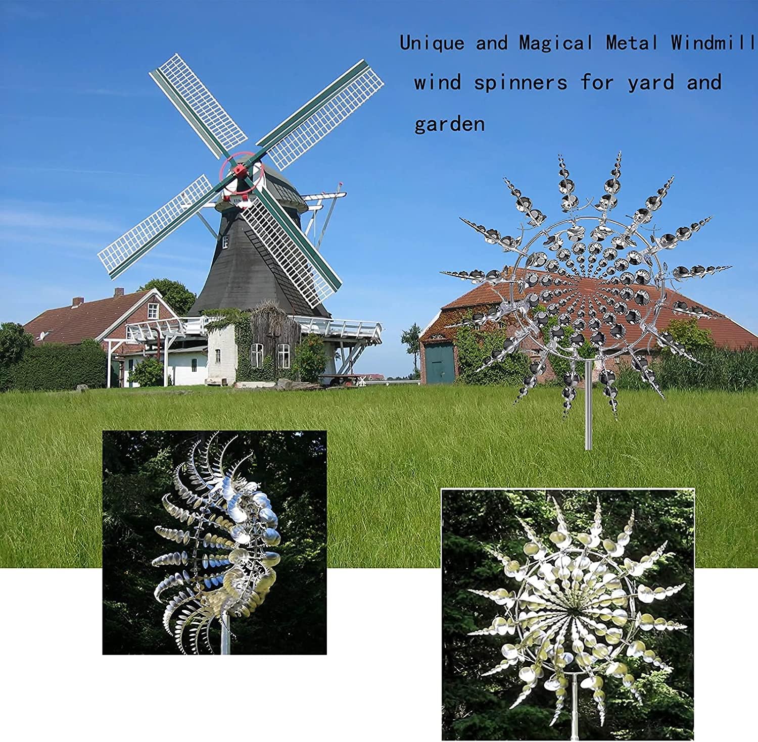 - ✔️【Install Easily】-- This gardening decorative windmill just relies on wind power, no extra accessories needed. You just place it in a sunny and windy place, and the unique and magical metal pinwheel will rotate with the wind into various beautiful and futuristic shapes. Metal pinwheels gleam in the sun and you can enjoy your garden decorations to the fullest.