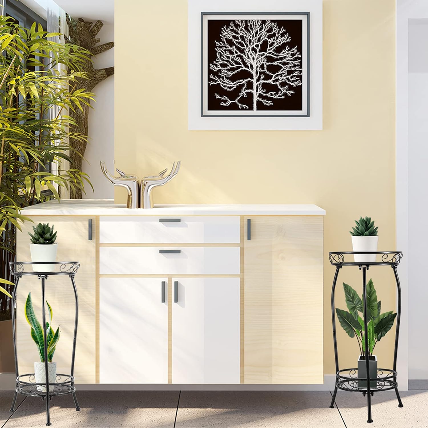 2-Pack Plant Stand Indoor Outdoor,Tall Black Metal Rustproof Stable Plant Stands,2 Tier 27.1 inch Multiple Plant Rack for Planter Corner Garden Living Room & Garden