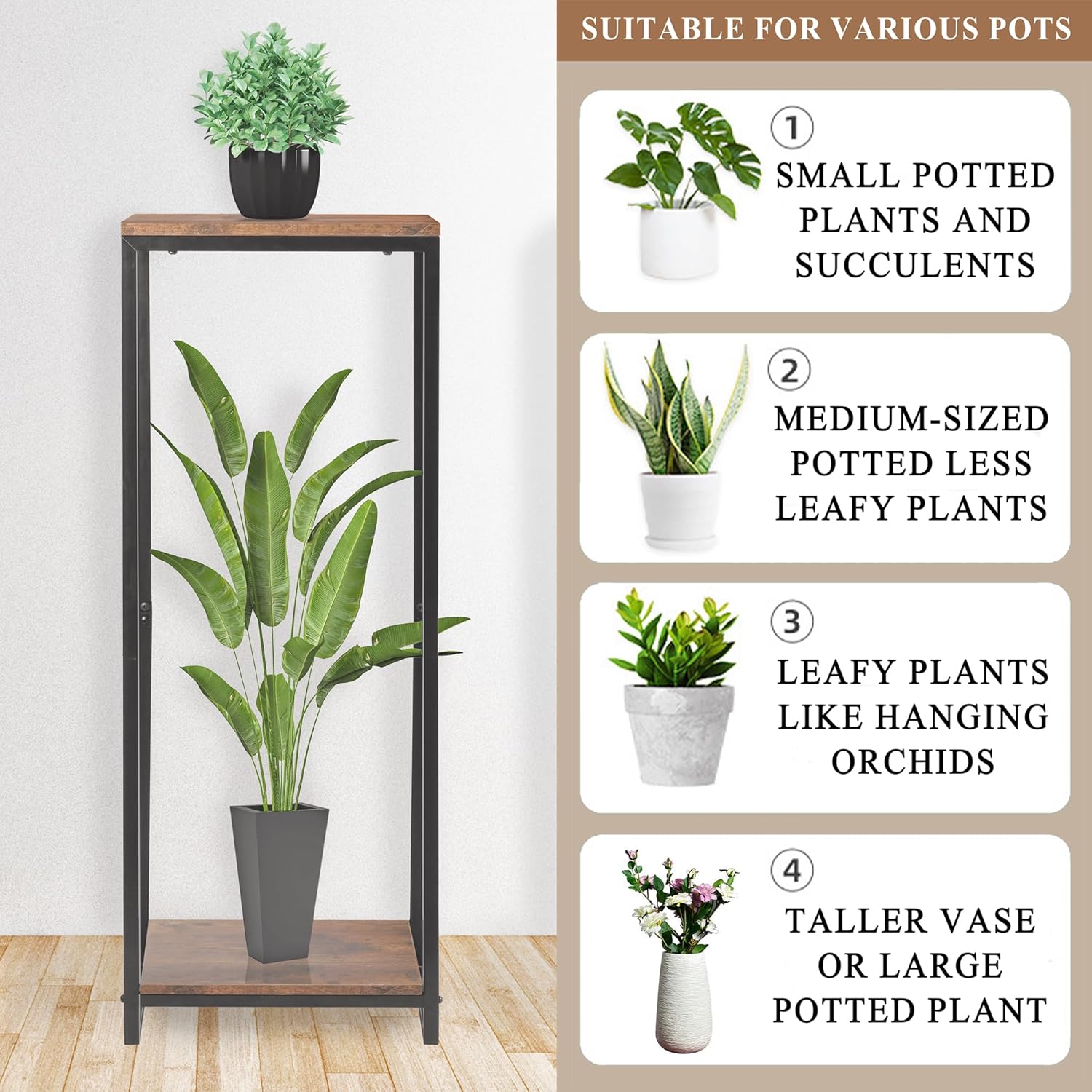 - 【Sturdy Structure】: This tall plant stand consists of heavy-duty rustproof metal tube, thickened top and bottom MDF, and 4 anti-floor scratching mats. The metal frame makes it more stable and maintenance-free; The flat shelf not only makes the flower rack more beautiful and consistent with the home decoration but also makes your plants or other decorations more stable
