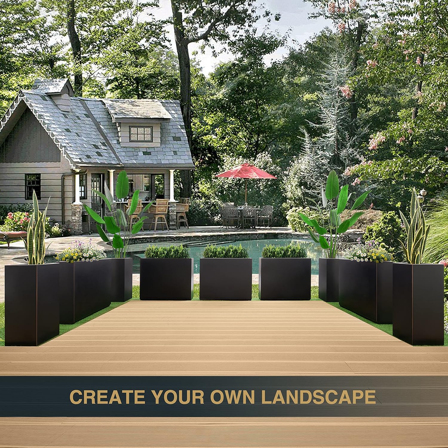 - 【Versatile Divider Design】Elevate your garden or outdoor space with this sleek, long rectangular planter. Its robust build not only enhances garden aesthetics but also serves as an elegant privacy divider for decks, patios, or entrances.