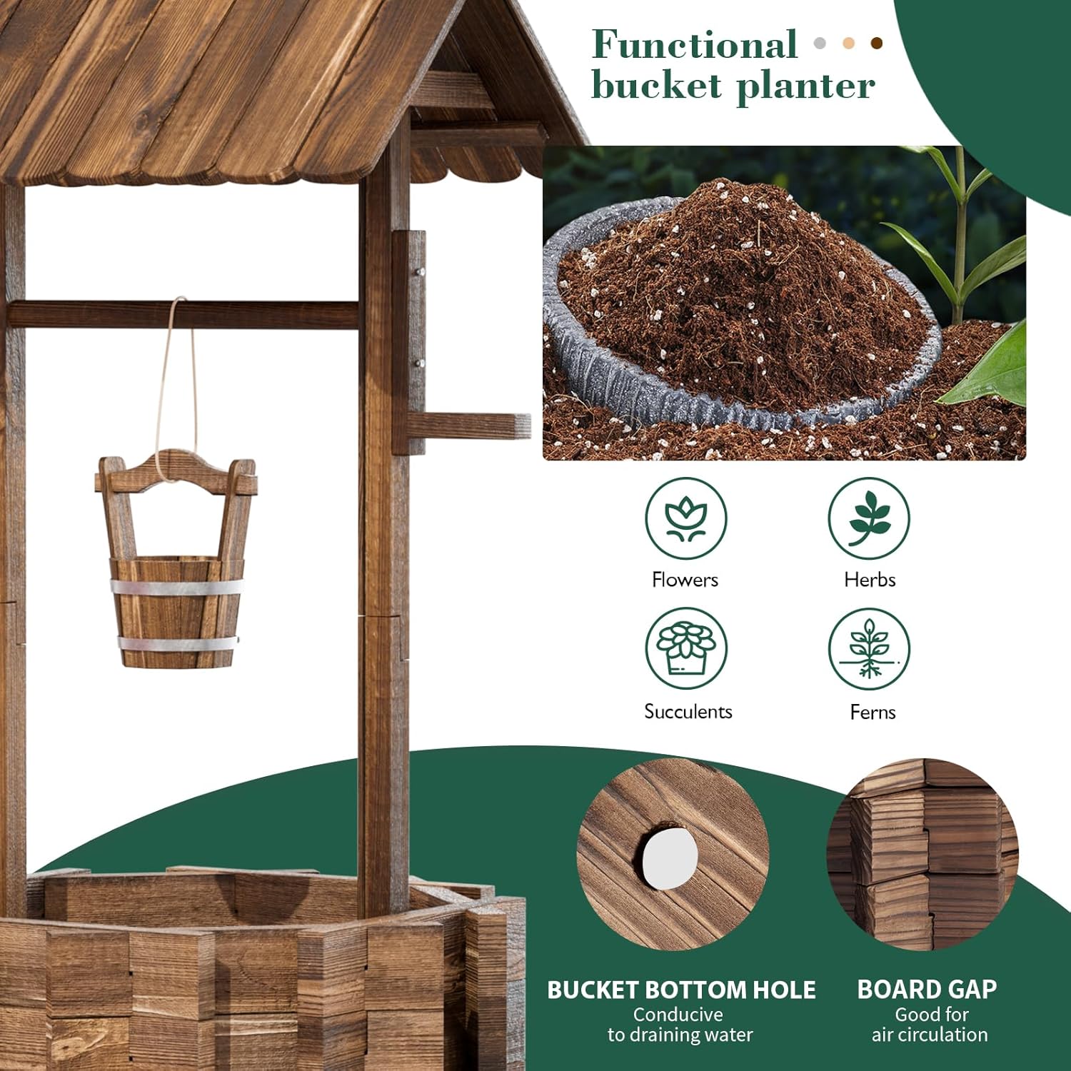 - Vintage yard decoration - Beautiful wishing well planter is the best choice for courtyard and garden decoration