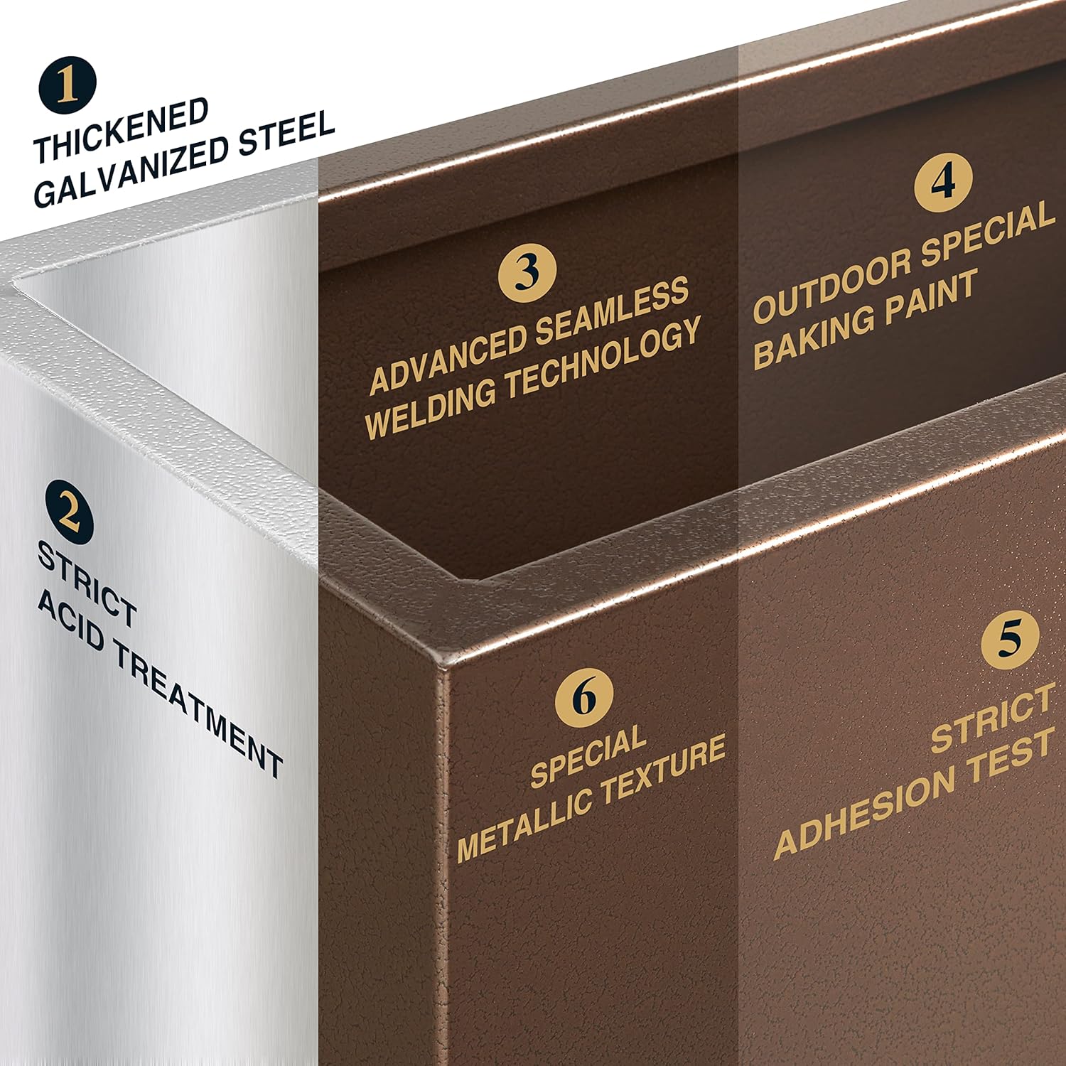 Metallic Heavy Long and Large Outdoor/Indoor Planter Box, 38”Lx15”Wx15”H, 40Pounds, Espresso