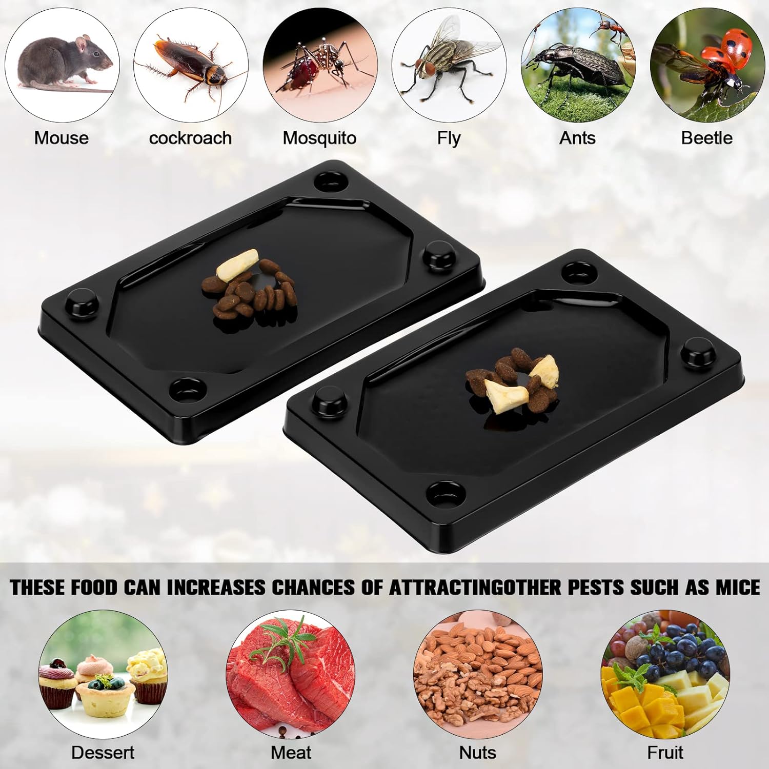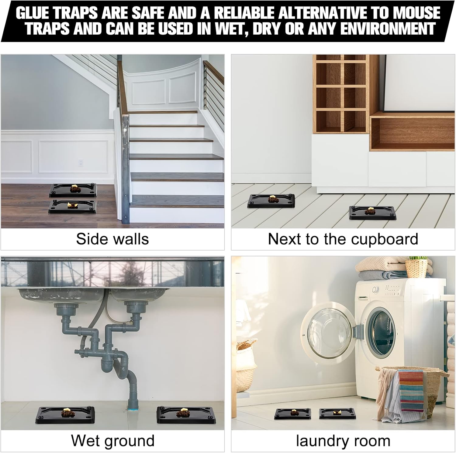 - Easy to Use: our mouse and snake glue traps can be placed in places where mice, snakes, rodents or insects are often infested, with the glue surface facing up, and 3 or 4 traps can be placed in a cage, or the mouse trap; Put some food in the middle to attract insects or rodents, such as bread crumbs, cheese, ham, candy, fruit, ice cream, to increase the probability of gluing rats