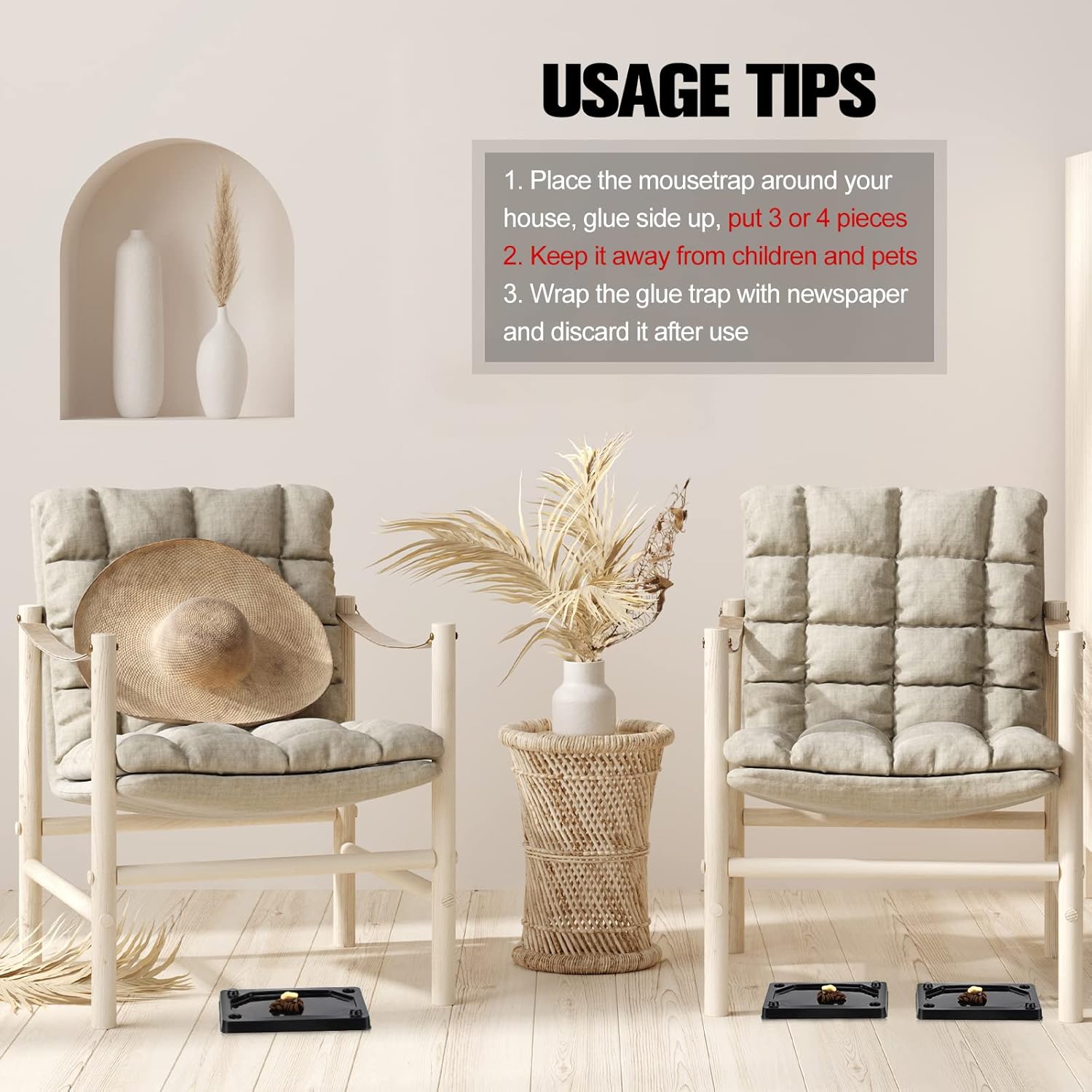 - Safe to Use: the indoor mouse sticky trap is family friendly, you can safely place it around your house, but be careful to keep it in a place away from pets; After use, wrap the glue trap in newspaper and discard