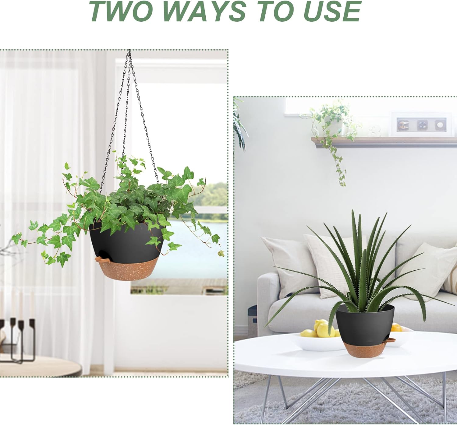 Hanging Planters for Indoor Outdoor Plants, 2 Pack Self Watering Hanging Pot with Drainage Holes & Removable Tray (Black, 10'')
