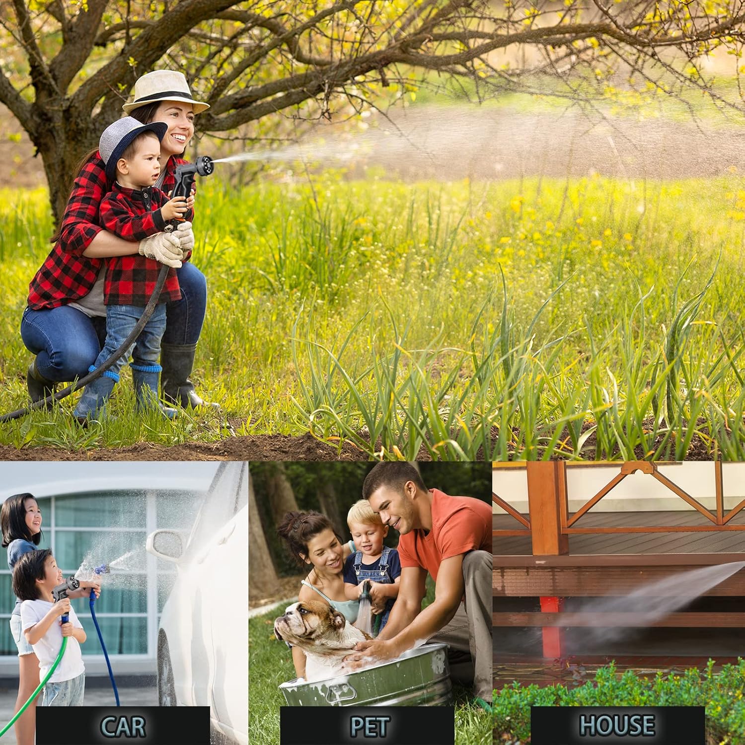 - 【FITS ALL STANDARD GARDEN HOSES】Garden hose sprayer fits all USA-based garden hoses - 3/4” Garden Hose Thread (GHT). No adapters required! The best choice for pet showering, lawn maintenance, flower and plant tending, window or patio cleaning, car-washing, cleaning hard surfaces and more with our garden nozzle sprayer!