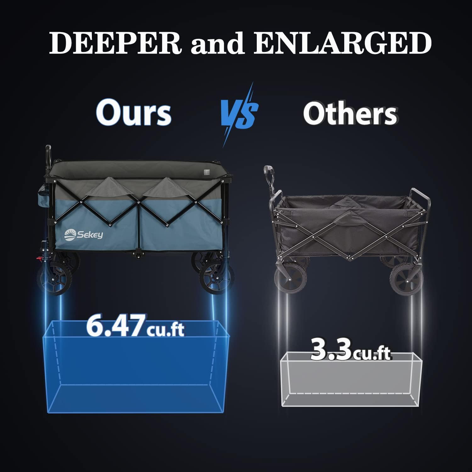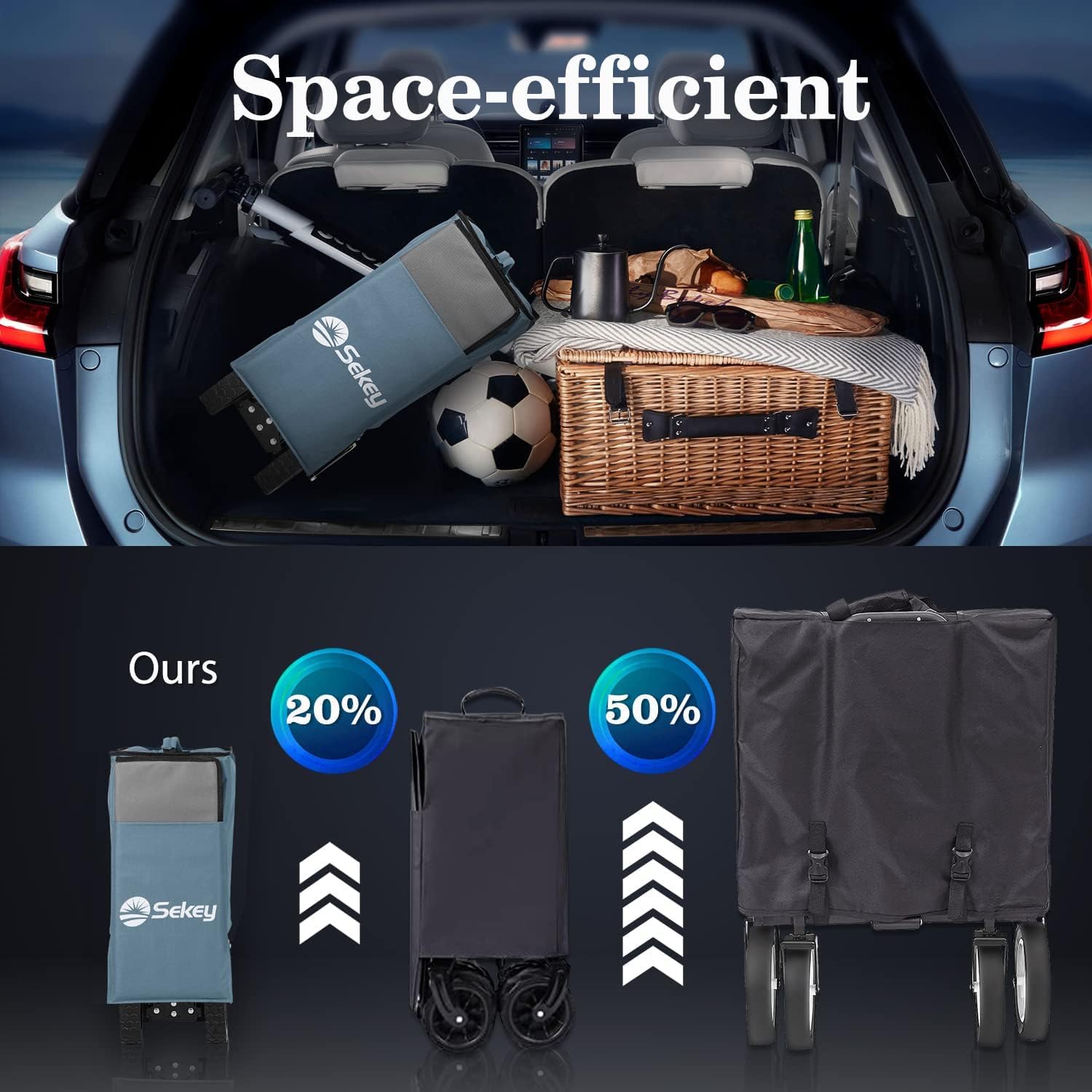 Sekey 220L Collapsible Foldable Wagon with 330lbs Weight Capacity, Heavy Duty Folding Wagon Cart with Big All-Terrain Wheels & Drink Holders (Blue&Grey)