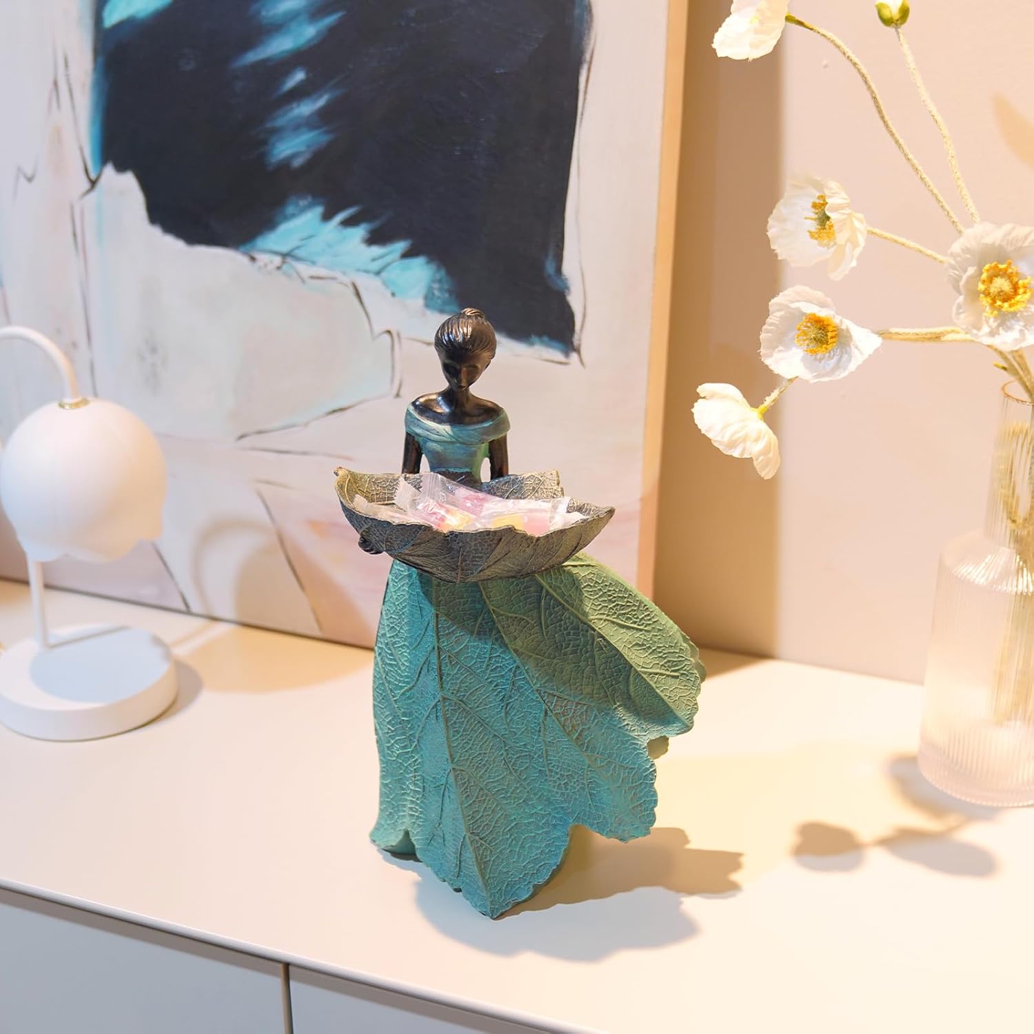 - 【VERSATILE INDOOR OUTDOOR USE】This fairy statue is lightweight and can be placed inside or outside your house. A drawing room decor/keyholder inside your house, or a bird feeder/bath/an eye-catching garden décor out of your house.