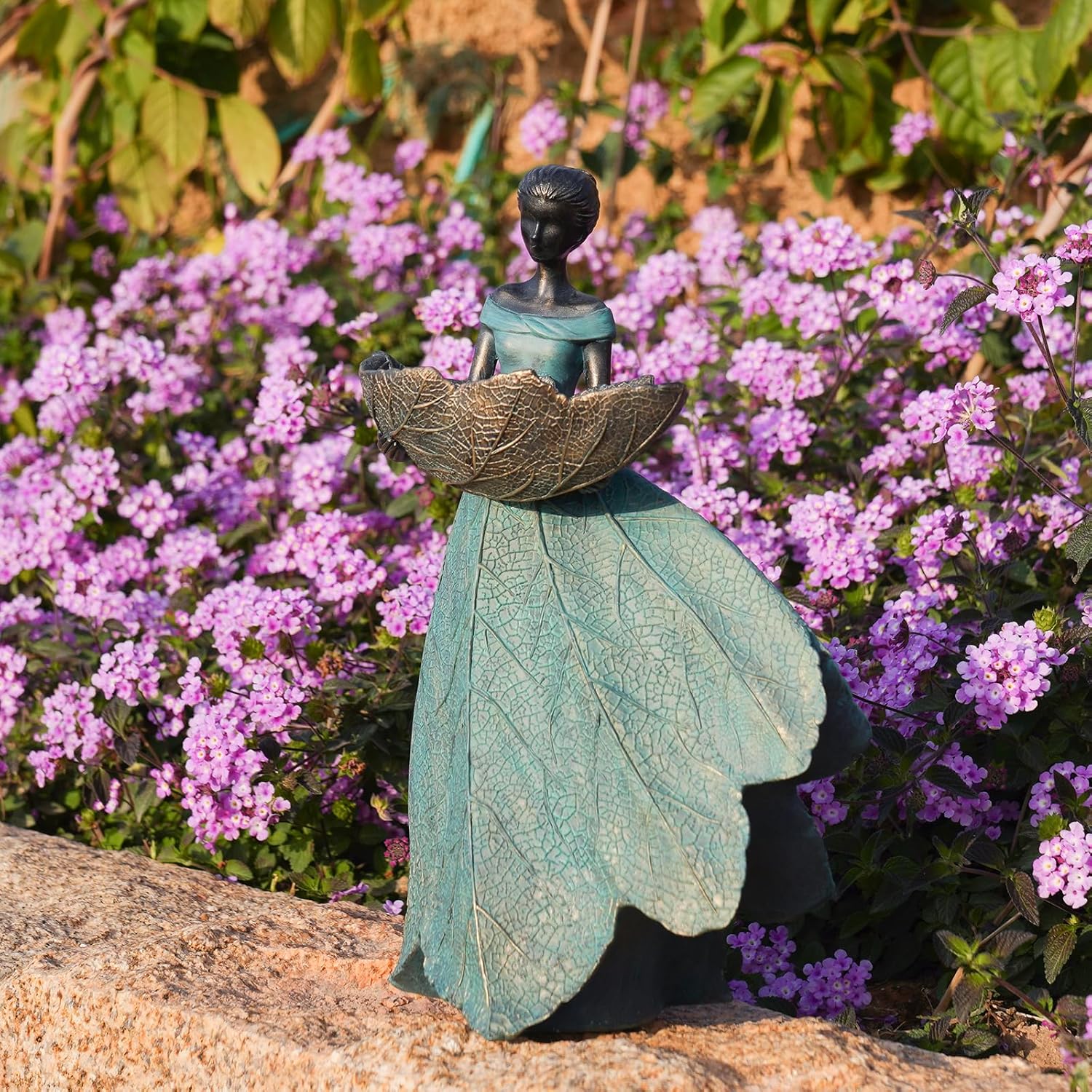 - 【EXQUISITE CRAFTSMANSHIP】Strong,yet lightweight and weather-proof, this striking and unique bird bath is crafted from the finest resin materials, with feeder securely hold on the hand of the garden fairy