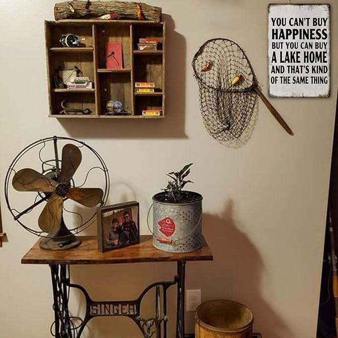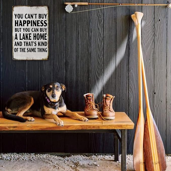 - WIDE RANGE OF APPLICATIOM: These fishing cabin lake house tin signs are not really rusty.(You Can'T Buy Happiness But You Can Buy A Lake Home) It is a fun and attractive decoration for your House, Home, Room, Lake house, Bar, Boat or Club.