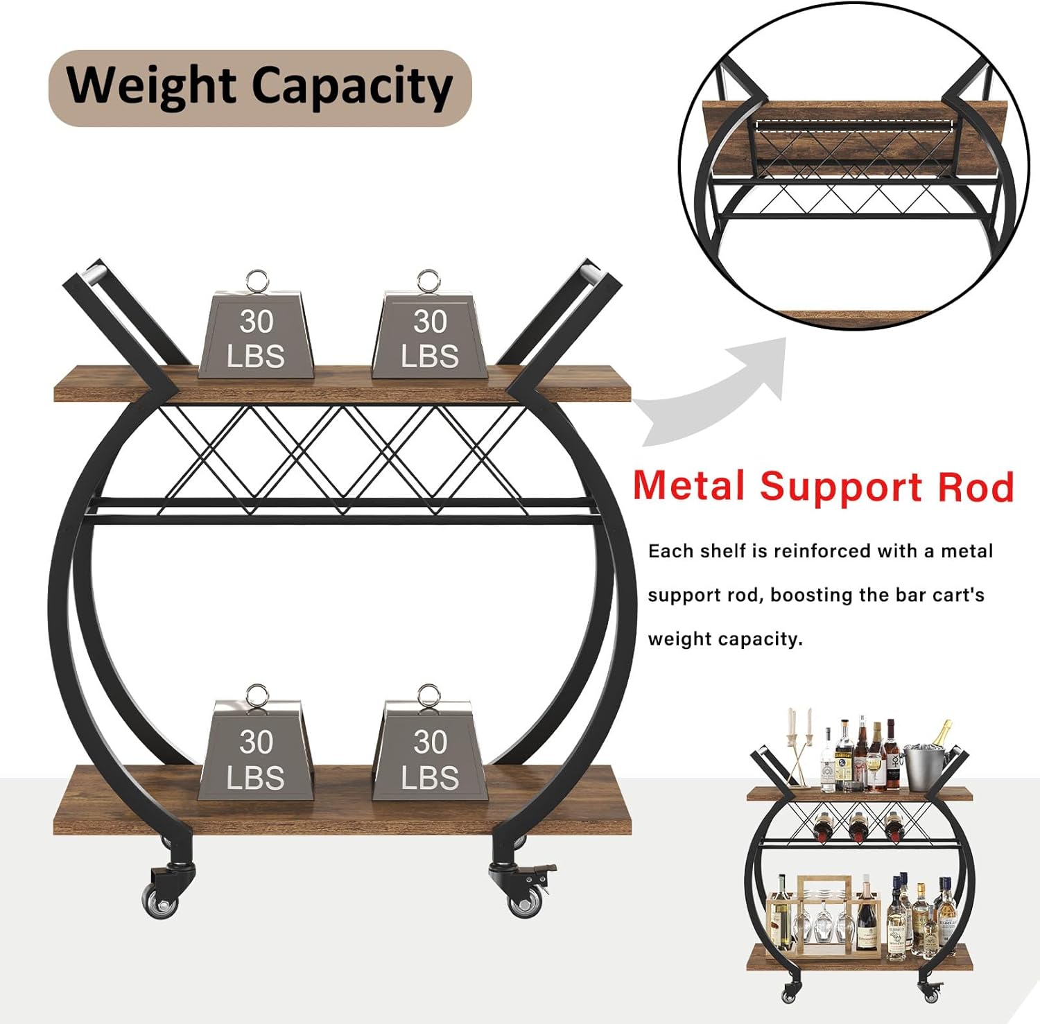 - Spacious Shelves to Hold More Items and Utility Bar Cart with Wine Rack to Prevent Oxidation: The industrial coffee cart table is designed with spacious tabletop and 2 tiers shelves to hold your coffee maker, wine and snacks for parties. Comes with a wine rack which hold up to 3 bottles of wine horizontally to keep the cork wet and prevent oxidation.