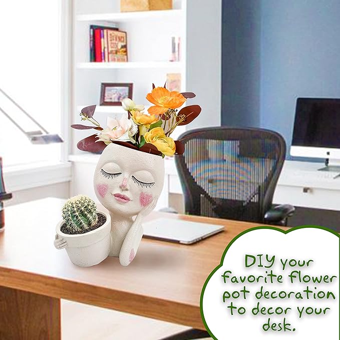 - Perfect Decorative Plant Pots: The face flower pot head planter with holding small little flower pot. This unique design makes the head flower pot a nice home garden decorative art craft. This funny head vase can decorate windowsill, desktop, shelf, balcony, living room, bedroom, kitchen, garden, office, etc.