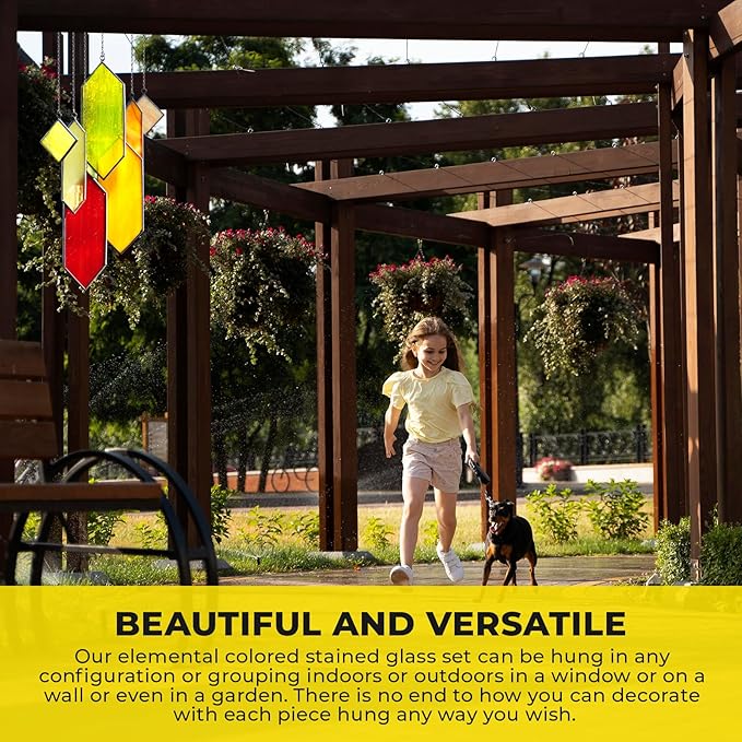 - 👌 Ready to Hang: This extra-large stained glass panel measures 24 x 7 inches (including chain) and arrives pre-assembled for easy hanging. Effortlessly reimagine your window decor by unclipping and rearranging it. Perfect for boho-styled XL stained glass wall art.