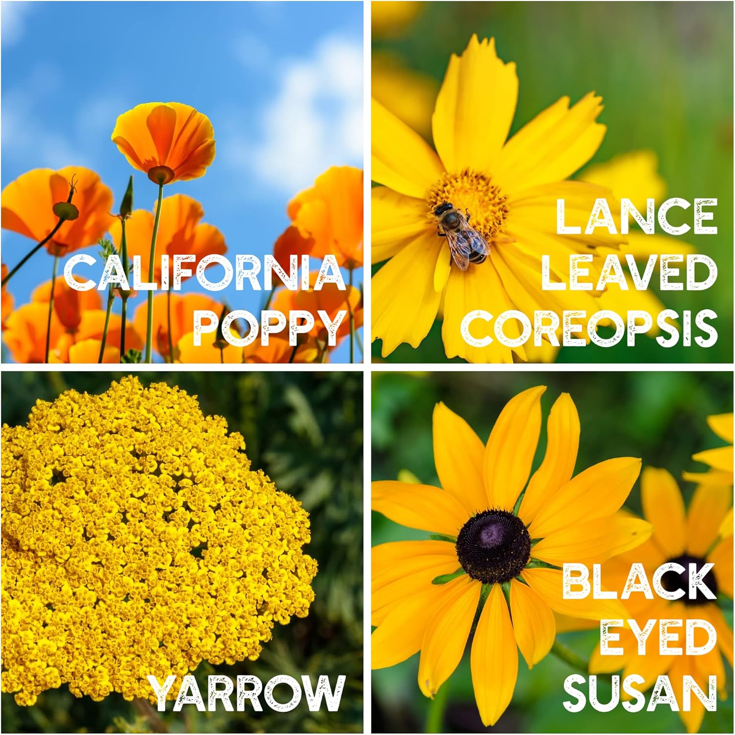 - 🐝This mix contains: California Poppy seeds for planting (Eschscholzia californica), Lance-Leaved Coreopsis (Coreopsis lanceolata), Yarrow seeds for planting (Achillea millefolium), Black Eyed Susan seeds for planting (Rudbeckia hirta), Ox-Eye Daisy (Leucanthemum vulgare), Blue Flax (Linum lewisii), Purple Cone Flower (Echinacea purpurea), Sweet William (Dianthus barbatus), Fox Glove (Digitalis pirpurea.), and Blanket Flower seeds for planting (Gaillardia spp.).