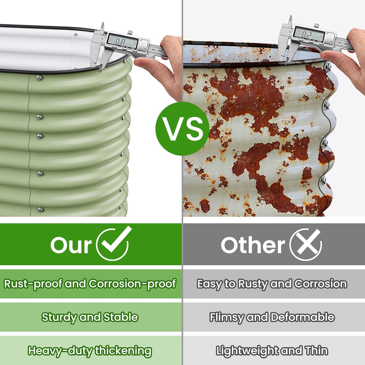 - Long-Lasting Quality:The garden beds are made of zinc aluminum-magnesium steel for durability. This advanced material is more resistant to corrosion and rust than traditional galvanized materials. Lasts 2-6 times longer than traditional galvanized raised beds, far longer than wood raised garden bed.