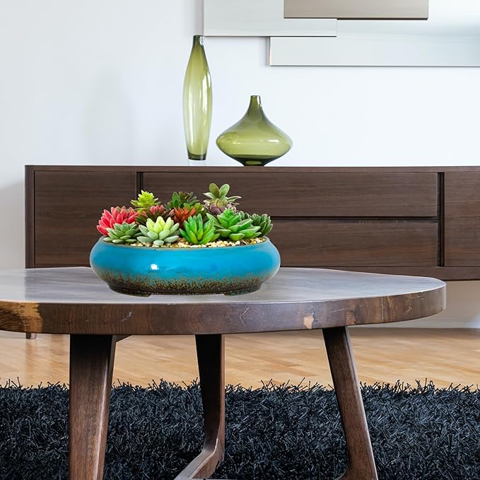 - Stylish Design: Round shape and blue glaze add a modern, artistic touch to any space.