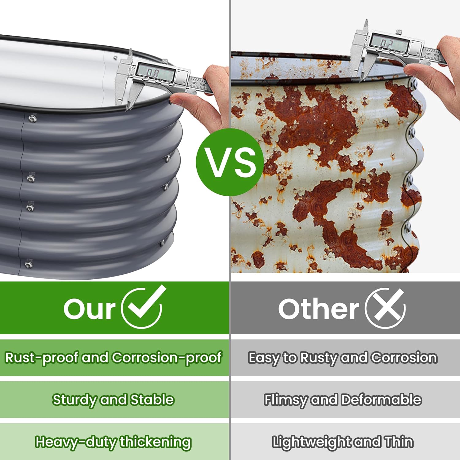 - Safety and Eco Friendly: We use USDA-approved paint that is 100% safe and eco friendly,so you can use our products with peace of mind.Plus,Our garden bed features an oval design that eliminates sharp corners and is covered with heavy-duty rubber edging to prevent injuries.