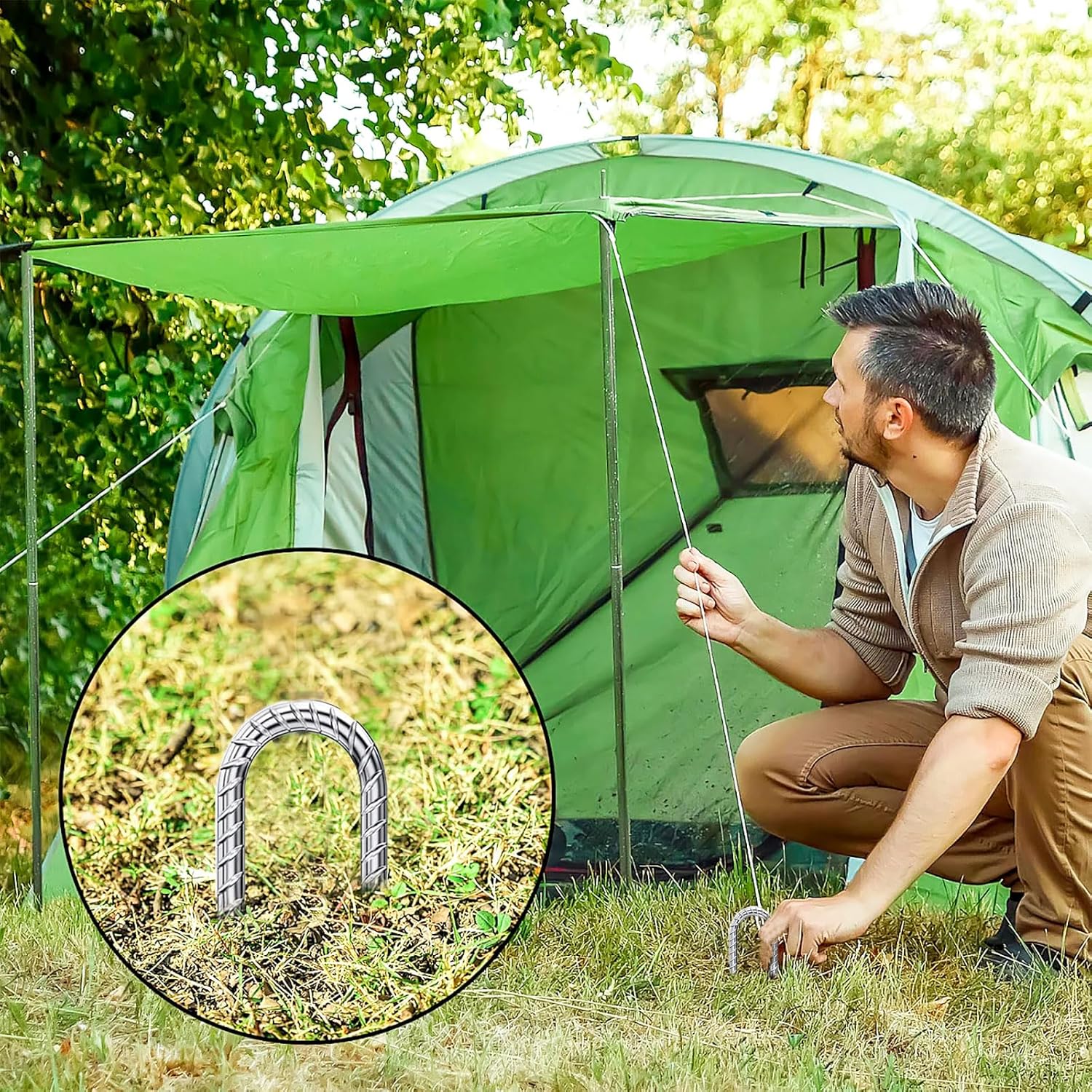 - Camping And Outdoor Adventures: These enduring U-shaped steel stakes are a must-have for securing tents, tarps, or camping gear, ensuring a safe, enjoyable experience in the wilderness.