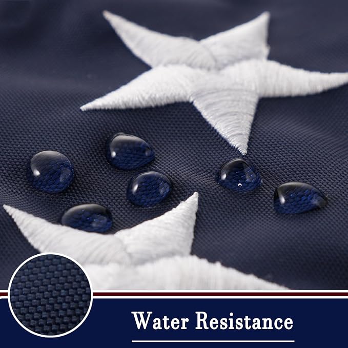 - GREAT WORKMANSHIP: The embroidery stars and sewing are made with precision craftsmanship. The superb double stitching makes the flag more durable and waterproof. This flag can withstand high winds, due to the quadruple stitched hem