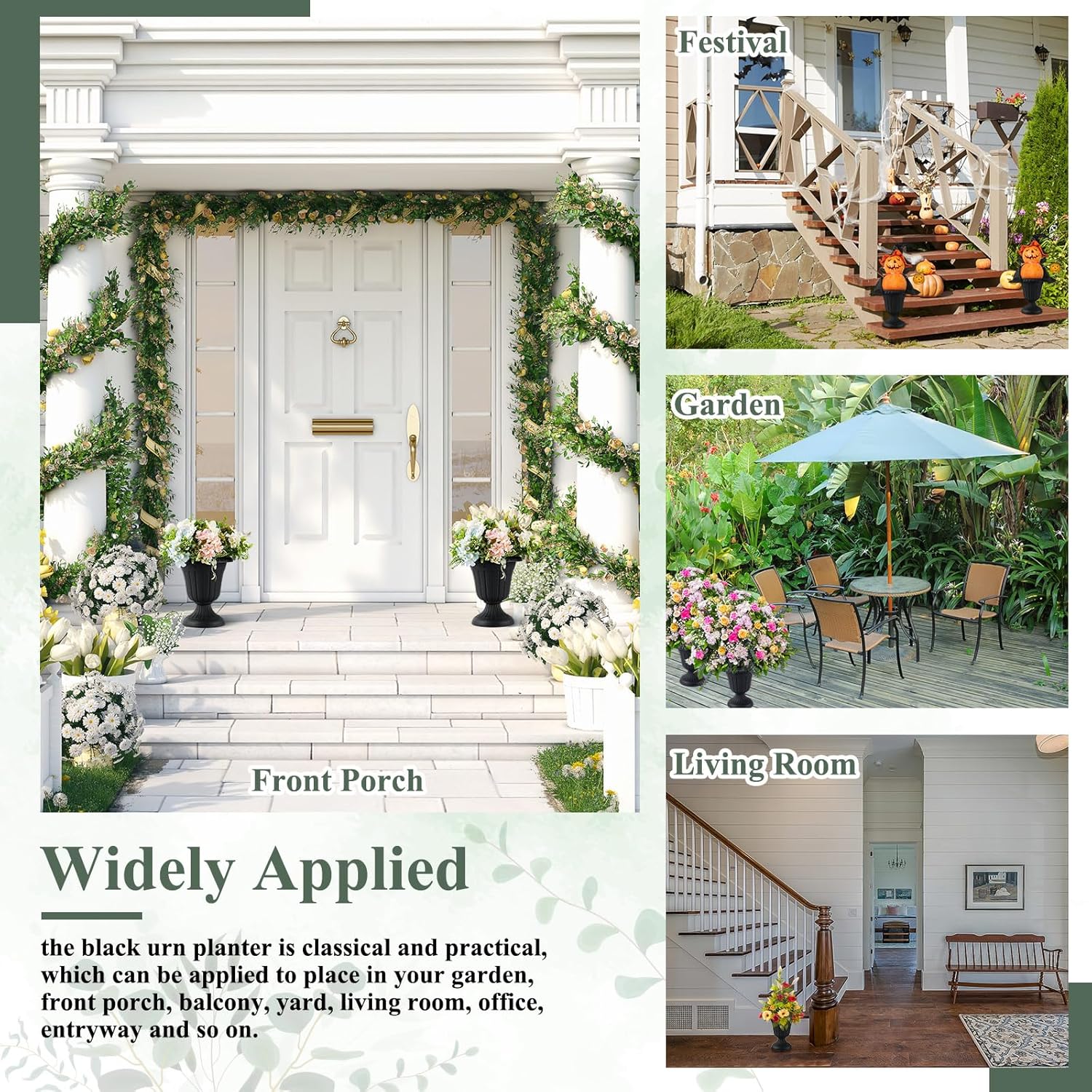 - Wide Range of Applications: the black urn planter is classical and practical, which can be applied to place in your garden, front porch, balcony, yard, living room, office, entryway and so on, suitable for planting flowers, plants, herbs, vegetables and so on