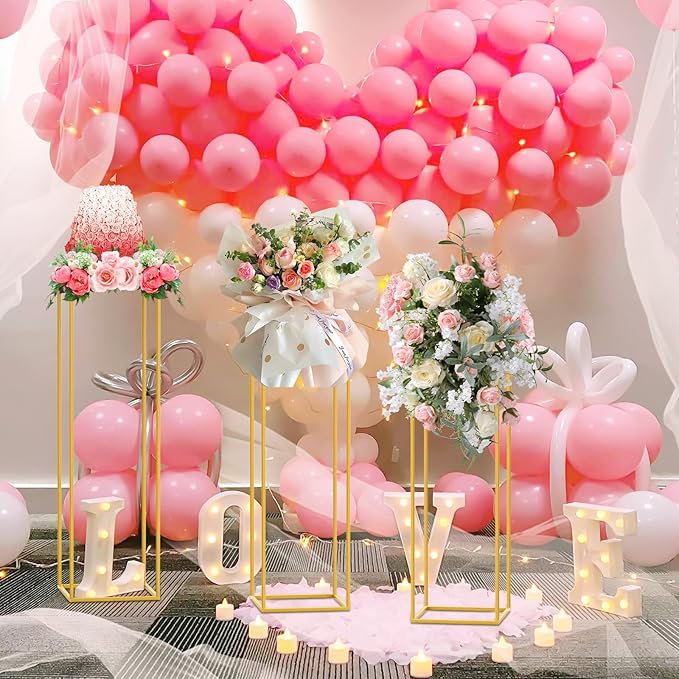 - 【Elegant Gold Design】Our metal plant stand set features a stylish gold color and tall cylinder design, making it the perfect addition to any party or wedding decor. The elegant look and feel of these stands will enhance the beauty of any indoor or outdoor space.