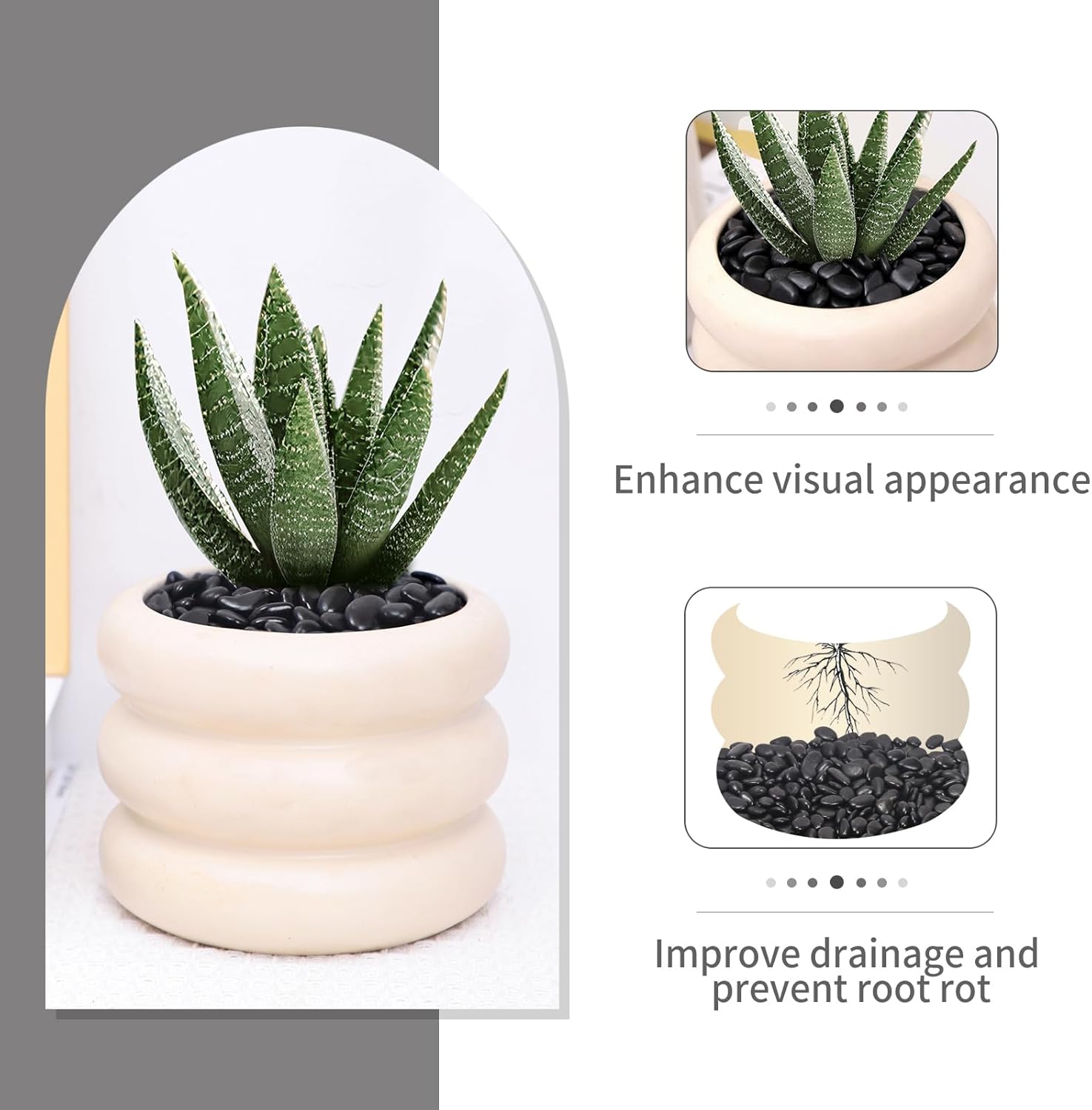 - For Vase Plants: These river pebbles improve drainage, retain soil moisture, prevent soil leakage, and add to the beauty of vases and plants.