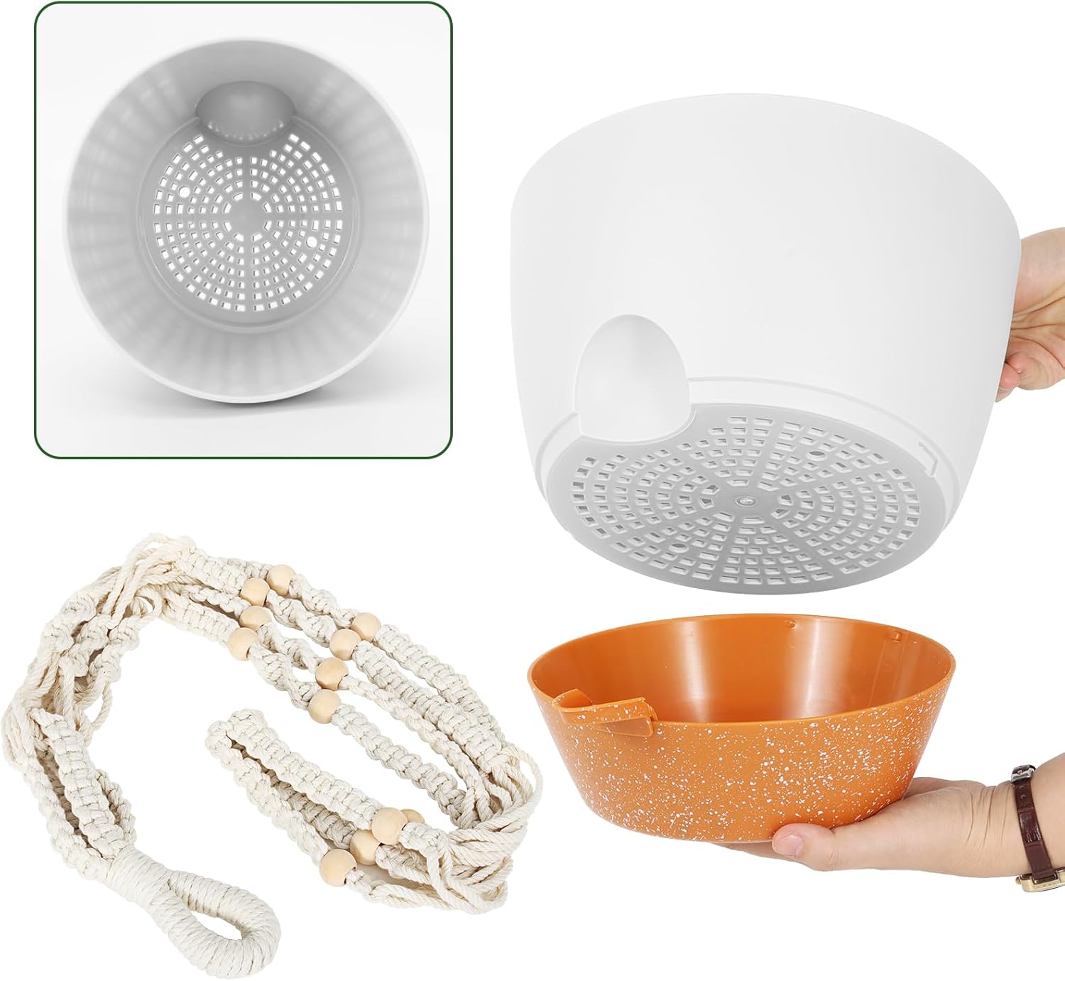 GARDIFE 10 Inch Hanging Planters with Macrame Plant Hanger for Indoor and Outdoor Plants, 2 Pack Large Self Watering Hanging Plant Pot with Basket Flower Pot with Drainage Hole, White