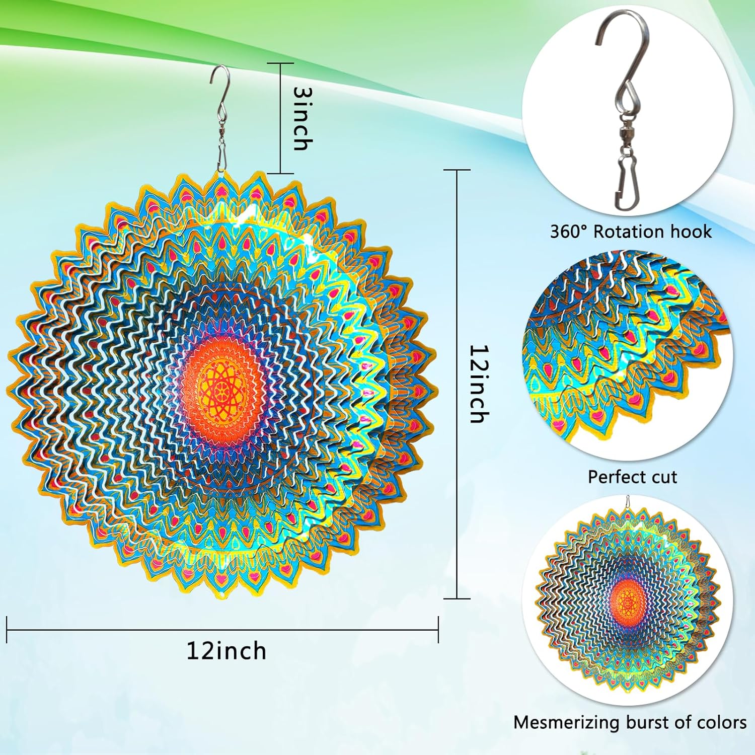 - 【Kinetic 3D Wind Spinner】The kinetic 3D mandala wind spinner has a stunning 3D mandala design that the unique flow of light surface adds vibrant colour and movement! This kinetic art metal wind spinner will add charm to your garden or yard.