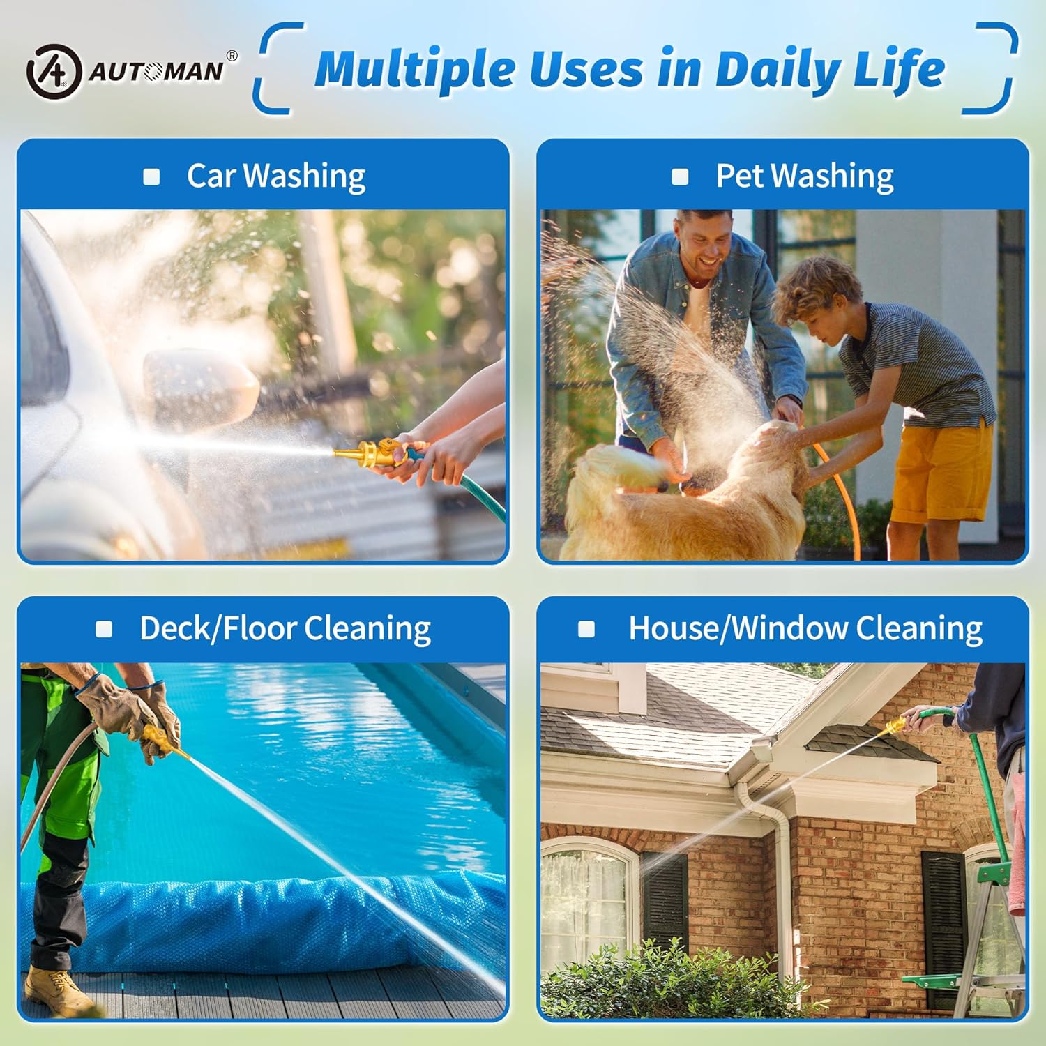 AUTOMAN Brass Hose Nozzle - High Pressure Jet Nozzle 4 Count (2 Set), Heavy Duty Water Hose Sprayer Sweeper with Hose Shutoff Valve, 3/4” GHT Nozzles for Garden Hose, Car Wash, Extra 10 Rubber Washers