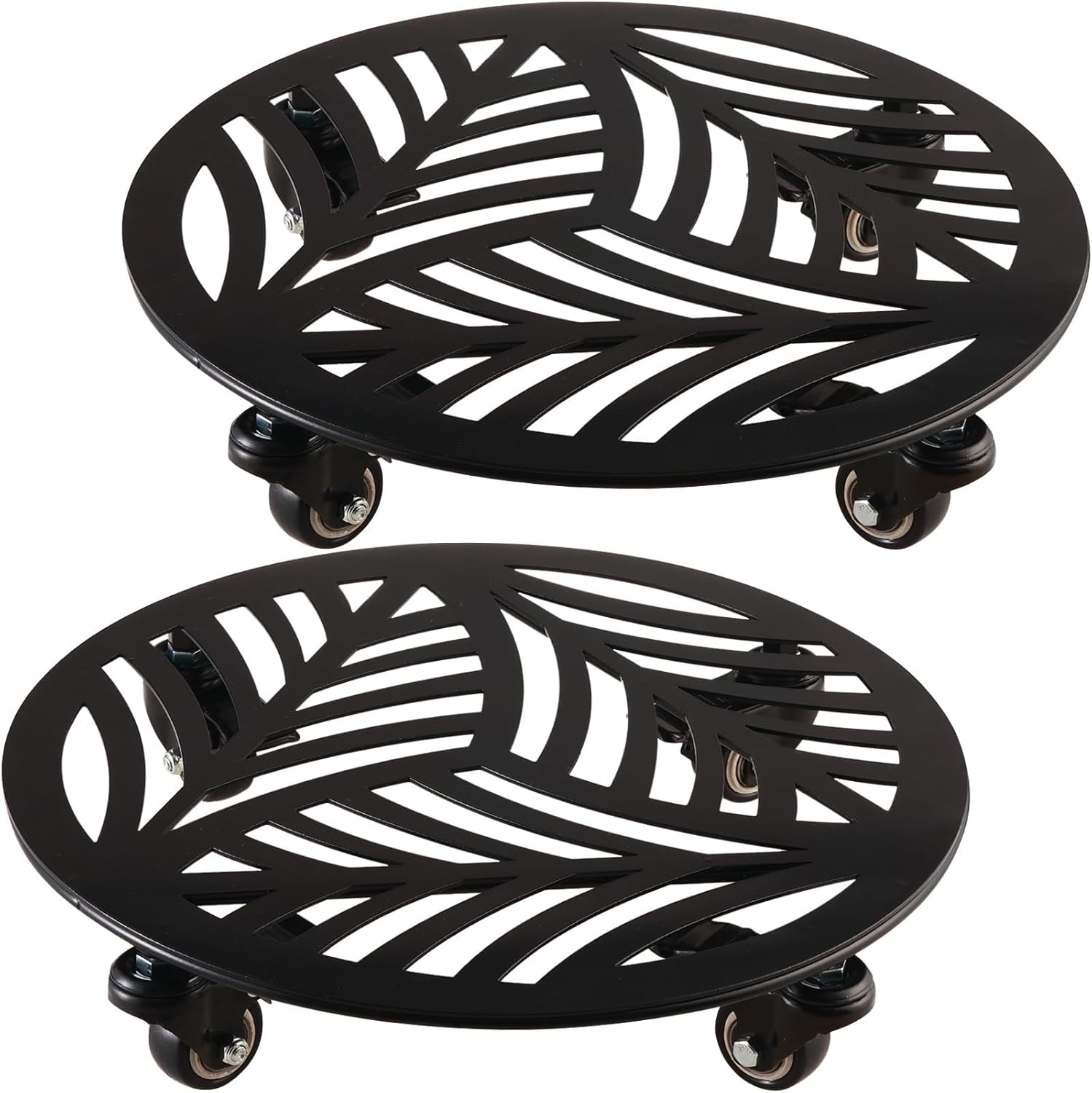 - Unique Design: The package will come to you with 2 packs of 13” large metal plant caddy, which is special designed like leaf pattern. It holds the heavy plant pots while add an addition to your home decor.