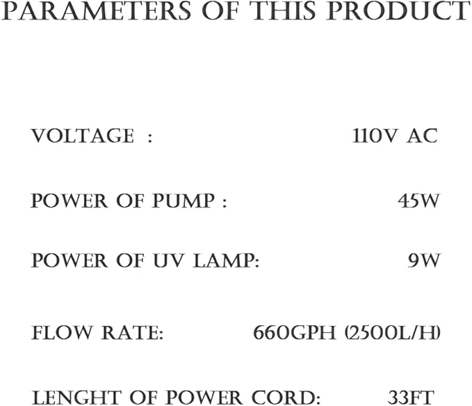 - U*V bulb- The built-in UV bulb works wonders by transforming green water into crystal-clear water. This feature ensures a healthier environment for your pond's ecosystem, making it a safe haven for aquatic life.A convenient indicator on the top lets you know if the light is functioning.